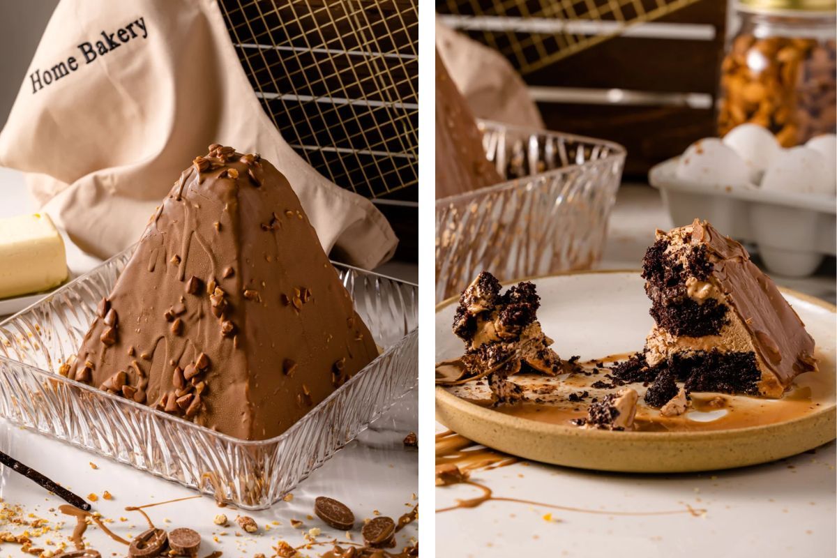 Take a climb on the Chocolate Mountain Cake at Home Bakery! Layers of chocolate cake, Nutella, and drizzled with chocolate sauce, the Chocolate Mountain Cake is a no-brainer for any chocolate lover.