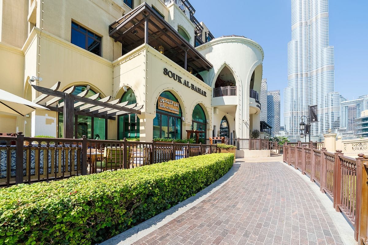 Souk Al Bahar, a modern Arabesque marketplace in Downtown Dubai, offers a unique shopping, dining, and entertainment experience. Known as the "sailor's market," it sits by the water and is accessible via Dubai Mall's walkway. The market features natural stone corridors, restrained lighting, and Arabian decor. Over 20 shops and 17 restaurants offer views of the waterfront promenade, while alleyways feature fashion, Arabian handicrafts, perfumes, and antiques. Despite its modernity, visitors can still immerse themselves in the city's heritage and traditions.