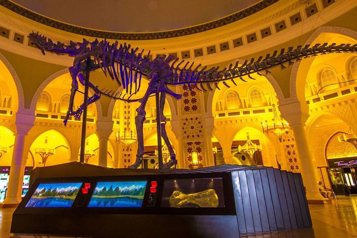 The Dubai Mall is home to the incredible Dubai Dino, which showcases a 155-million-year-old dinosaur skeleton originally from Wyoming. This remarkably preserved skeleton stands an impressive 7.6 meters tall and spans a length of 24.4 meters, providing a fascinating window into the ancient past. You can find this astonishing display in The Souk, adjacent to the ice rink, and it's completely free to visit during the mall's regular opening hours. The Dubai Dino is a captivating attraction that ignites curiosity about dinosaurs and paleontology, making it an essential stop for anyone passionate about these prehistoric creatures or seeking remarkable photo opportunities.