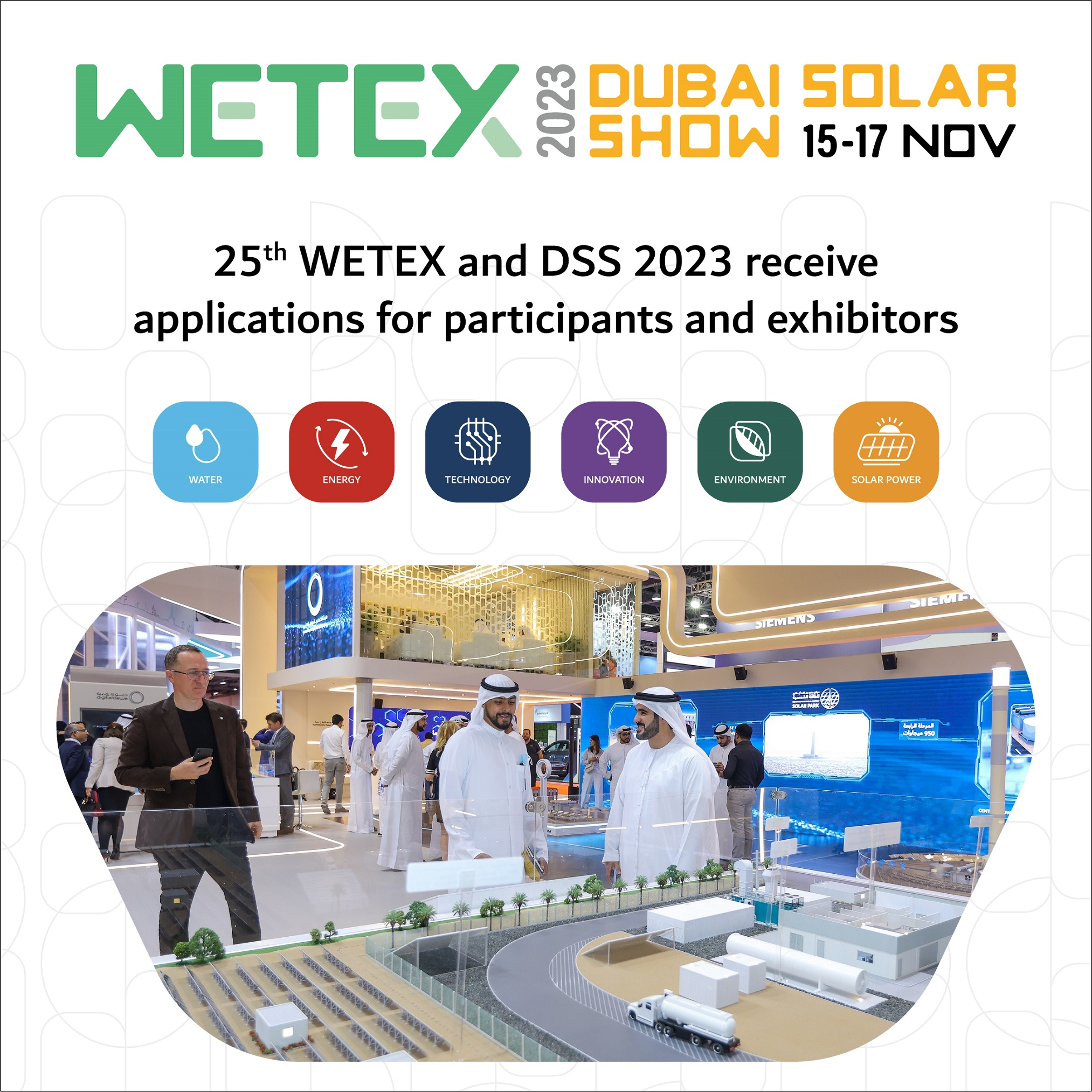 Dubai Electricity and Water Authority (DEWA) has started receiving applications from exhibitors and companies from around the world to participate in the 25th Water, Energy, Technology, and Environment Exhibition (WETEX) and Dubai Solar Show (DSS).
