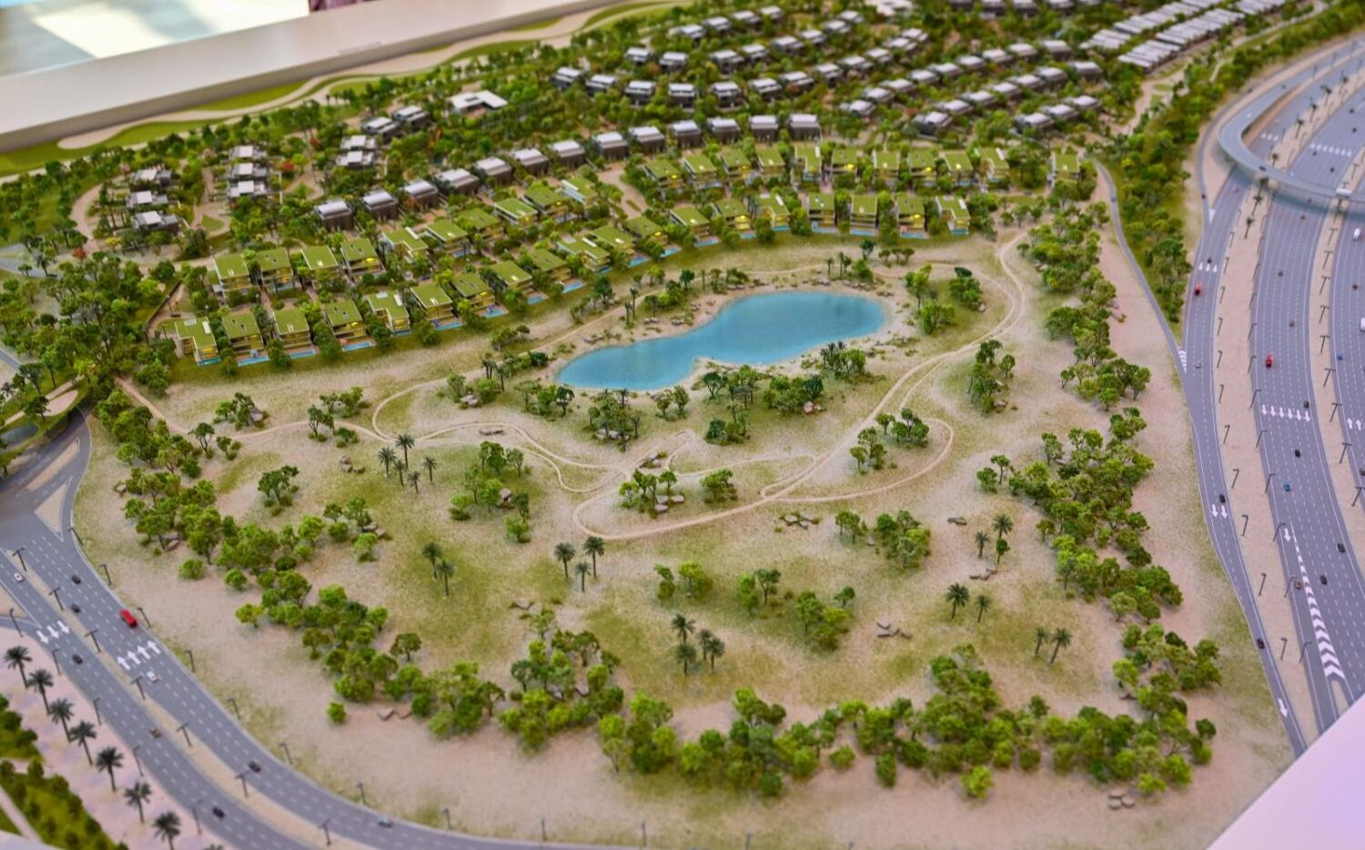 The topography of the land design is called a folded earth, said Ahmed Al Khatib, chief development and delivery officer at Expo City Dubai. When a resident sits on the terrace, he/she can enjoy the landscape as far as the eyes can go without any blocked views or building causing obstructions.