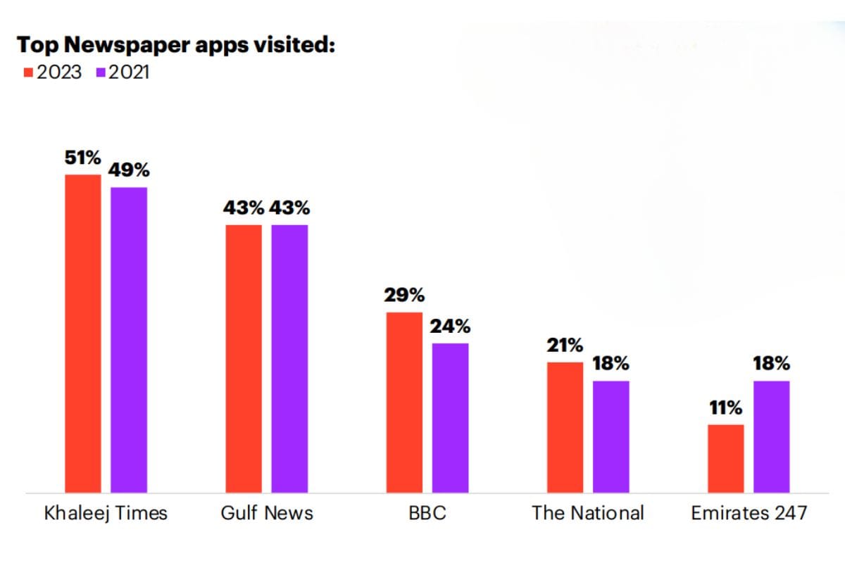 In the UAE, 55% of the general population prefers to read news online rather than in printed newspapers. On average, 88% of the population spends time reading newspapers digitally each week, showing a 2% increase from the previous year.