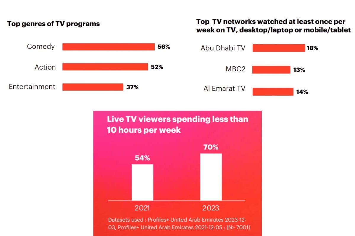 A greater percentage of UAE residents spent fewer than 10 hours per week watching live TV in 2023 compared to two years ago.