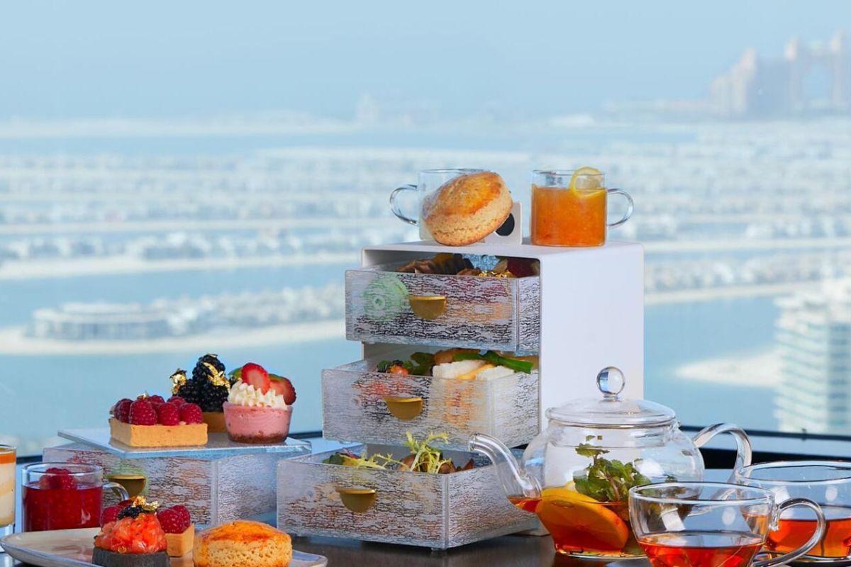 Enjoy an afternoon sipping on tea and indulging in a selection of sumptuous sweet and savory treats complete with 360-degree panoramic views of Palm Jumeirah and Dubai Marina at the Sky High Tea offering. Enjoy scones, paired perfectly together with lemon & honey jam, raspberry jam, mascarpone cream and bordier butter. Tuck into salmon tartare on black crostini topped with olive oil pearls; free range egg and truffle mayonnaise sando; cured veal, baby gherkin butter and mustard sandwiched between a soft Parisian bun, and more. End on a sweet note with gold berry tartlet, basil strawberry cheesecake, white chocolate and vanilla custard, as well as French macaroons, served alongside a choice of premium artisan tea or glass of bubbly. Available from Sunday to Friday from 12.30pm-5pm for Dh120 and Dh170 per person. For bookings call 04 319 4000