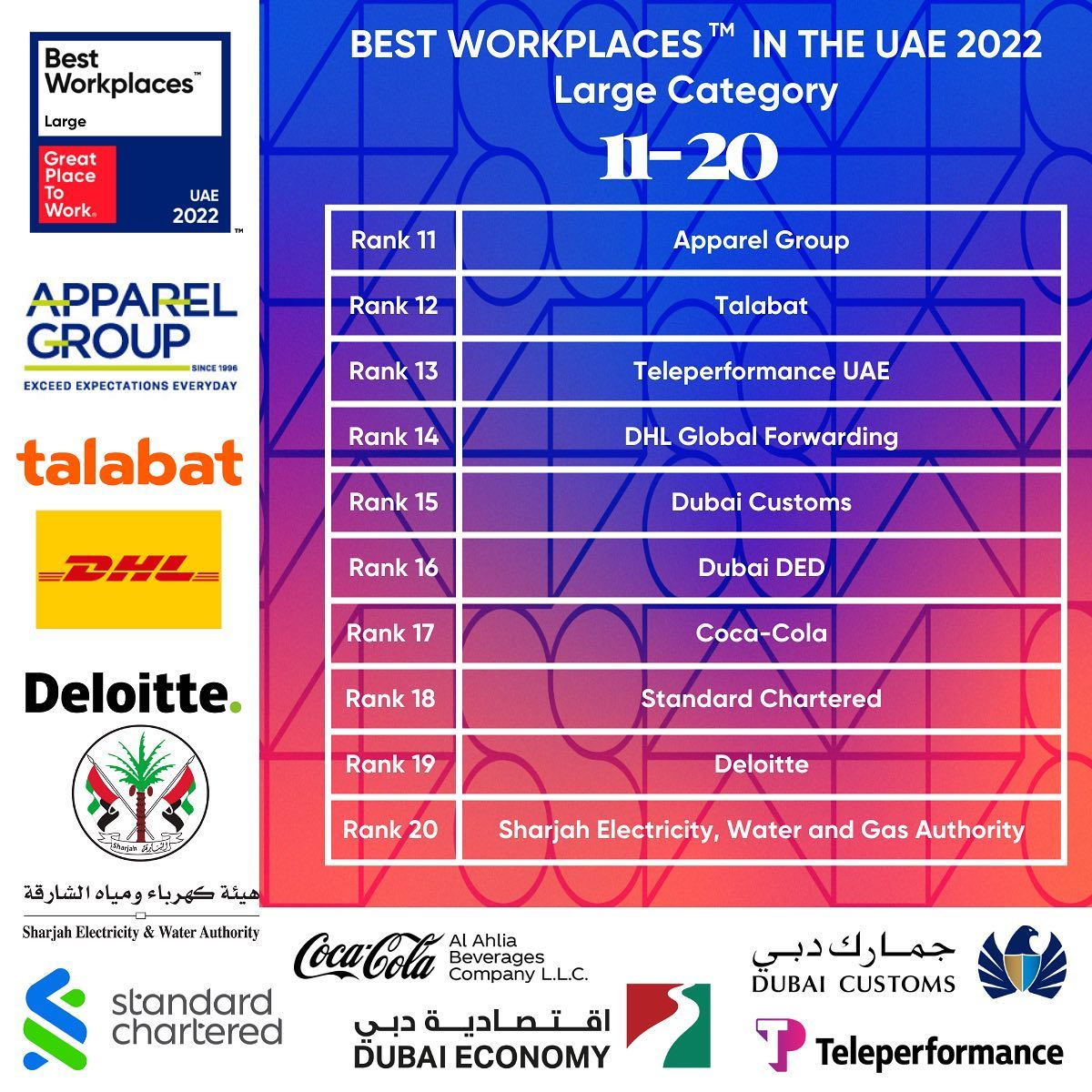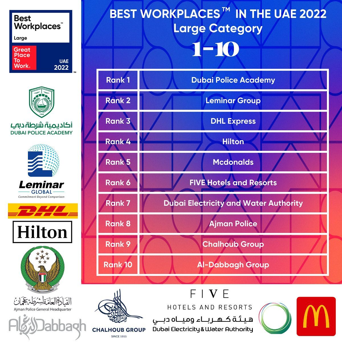 Here are the best workplaces in the Middle East for 2022 for large organisations: