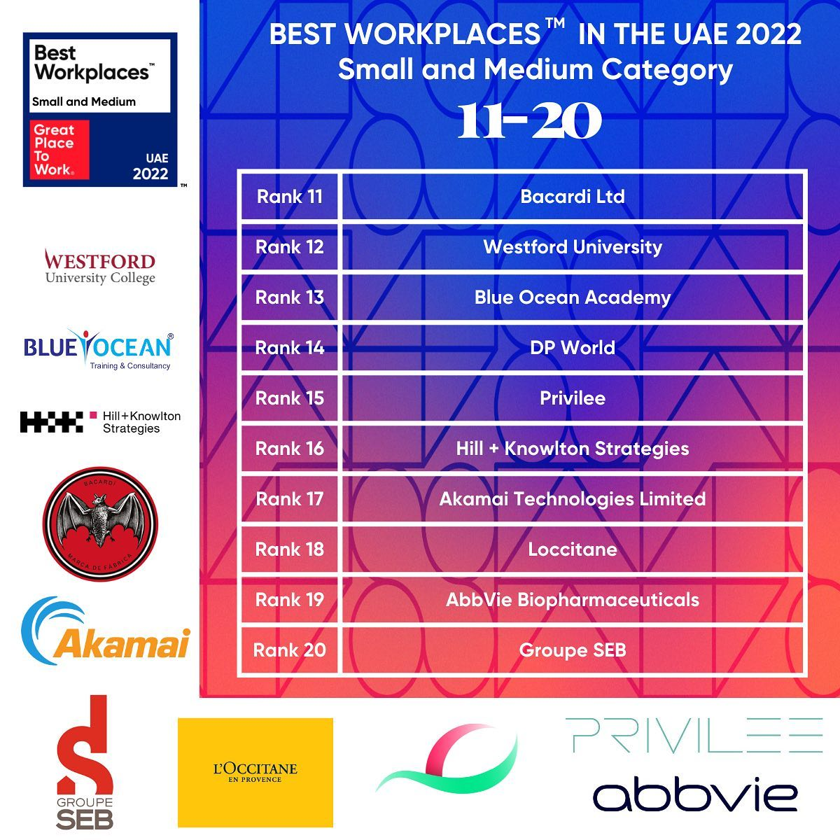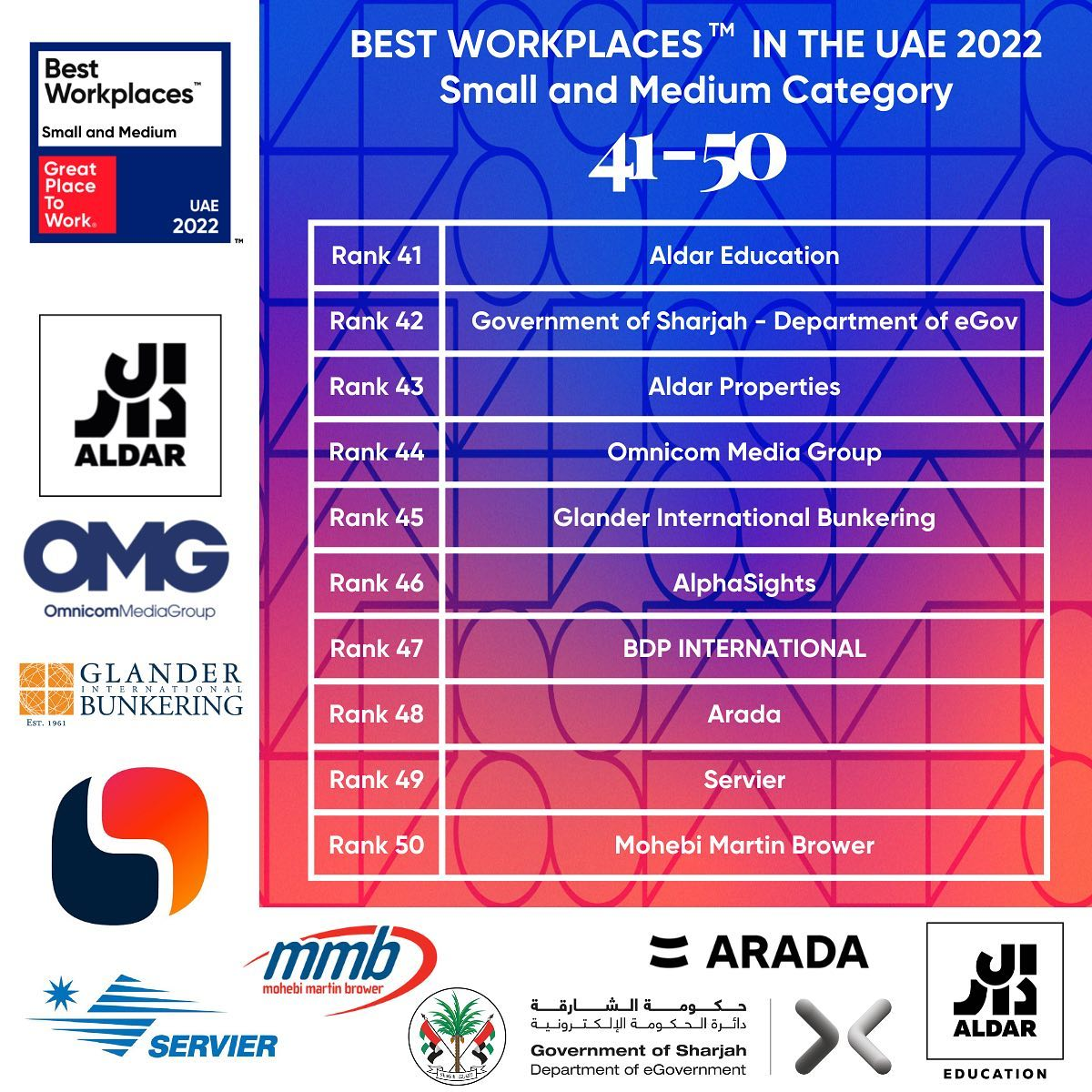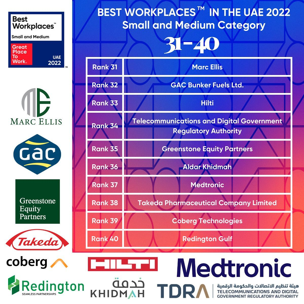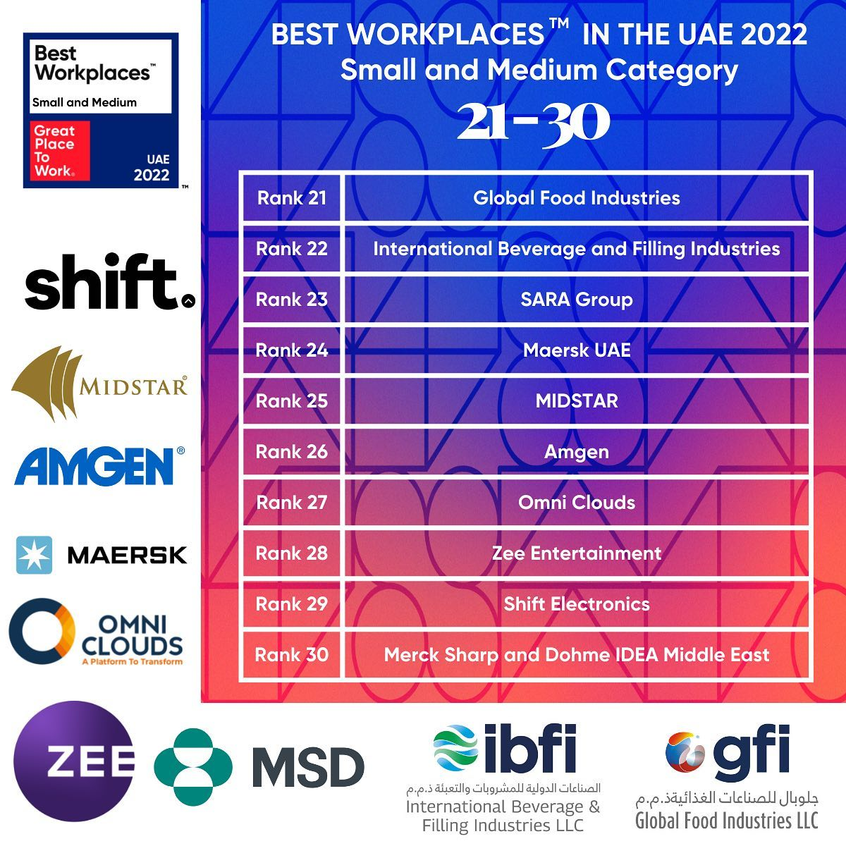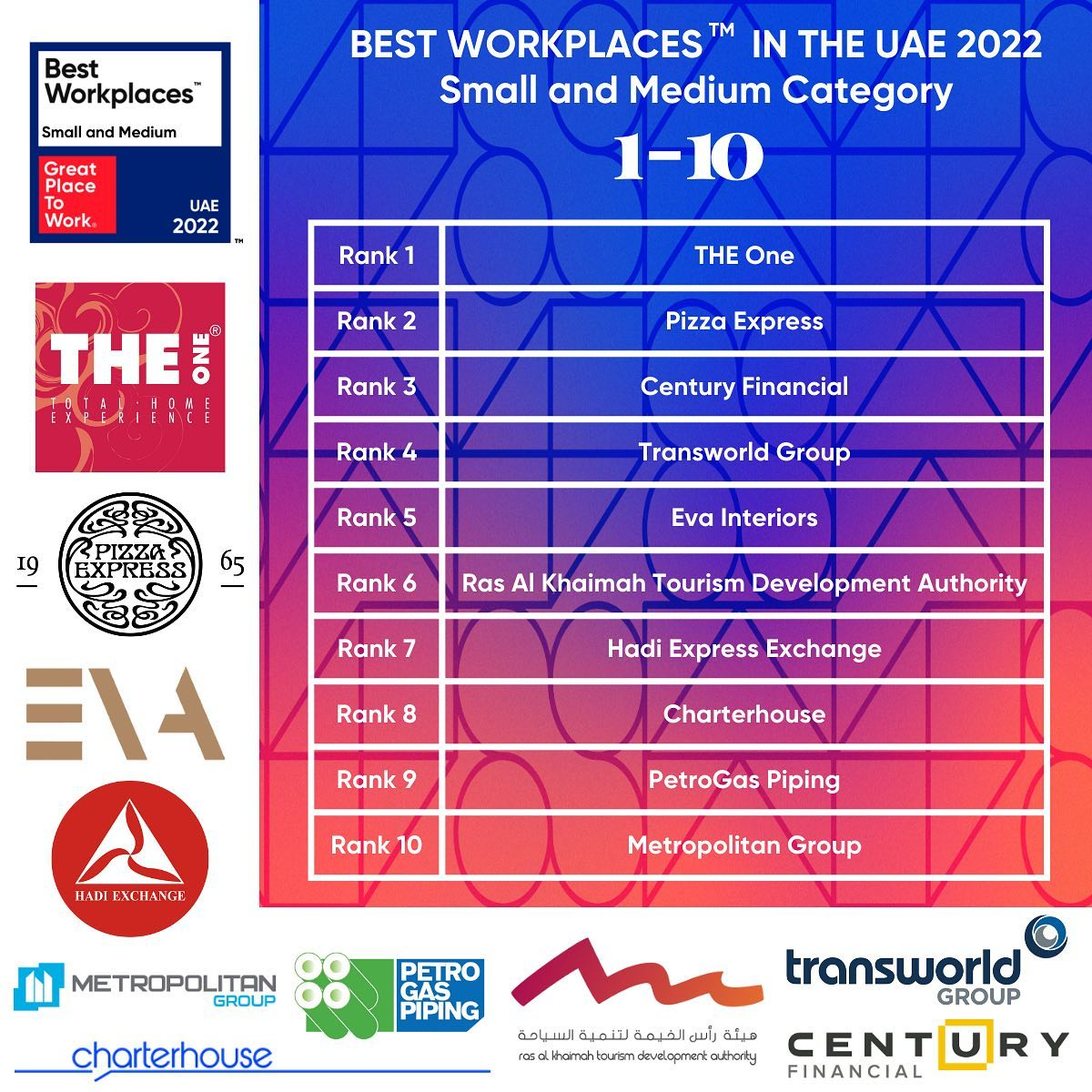 Here are the best workplaces in the Middle East for 2022 for small & medium organisations: