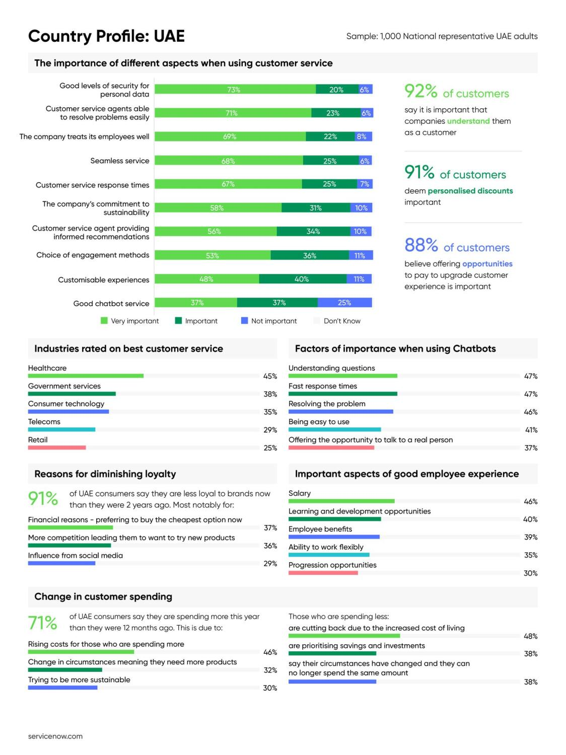 The ServiceNow customer experience report not only reflected consumer sentiments about their own experiences but also touched upon the treatment of employees, considering the growing focus on environmental, social, and governance (ESG) factors. In the UAE, 91 percent of those surveyed deemed it important how brands treat their employees, and three-quarters stated they would be less likely to engage with a company if they knew its employees were unhappy.