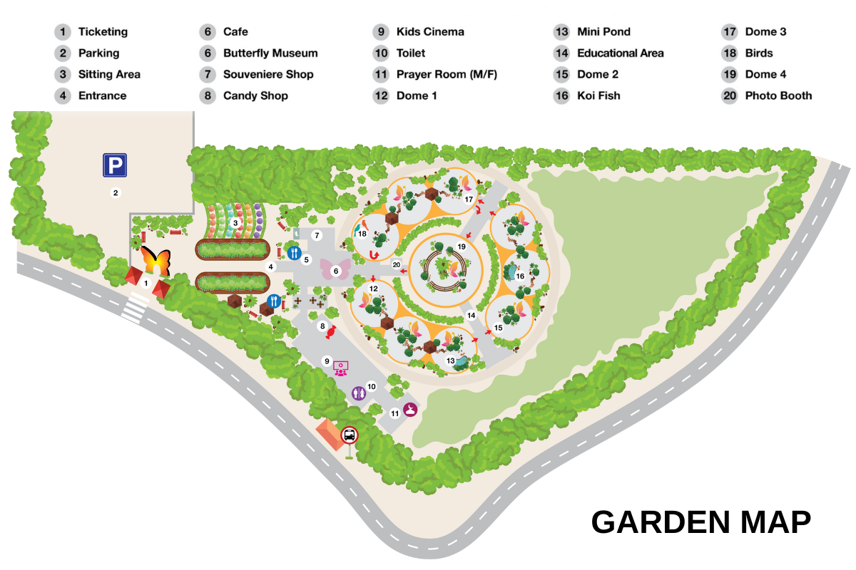 - Bringing food and beverages inside the garden is strictly prohibited, as these can attract predatory insects that can harm the butterflies.