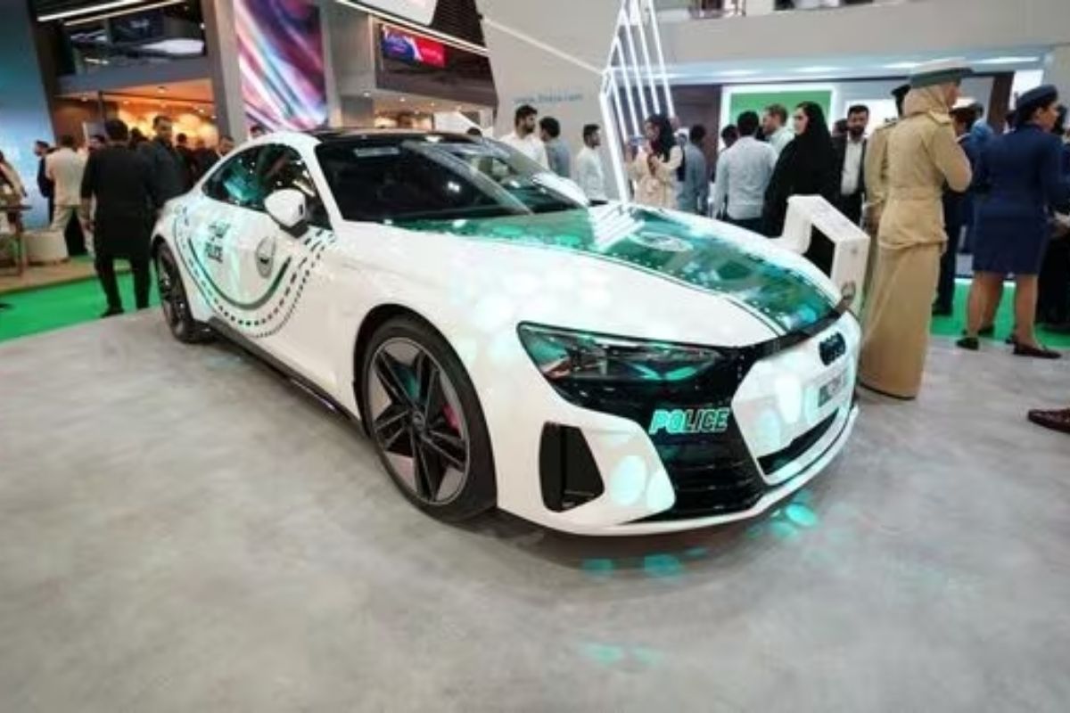 The all-electric patrol model was showcased at the Arabian Travel Market 2023, held at the Dubai World Trade Centre. It is the latest edition to Dubai Police's fleet of numeorus electric cars. The Audi RS e-tron GT is powered by an 800-volt lithium-ion battery with a range of 472 km and a power output of 646 horsepower.