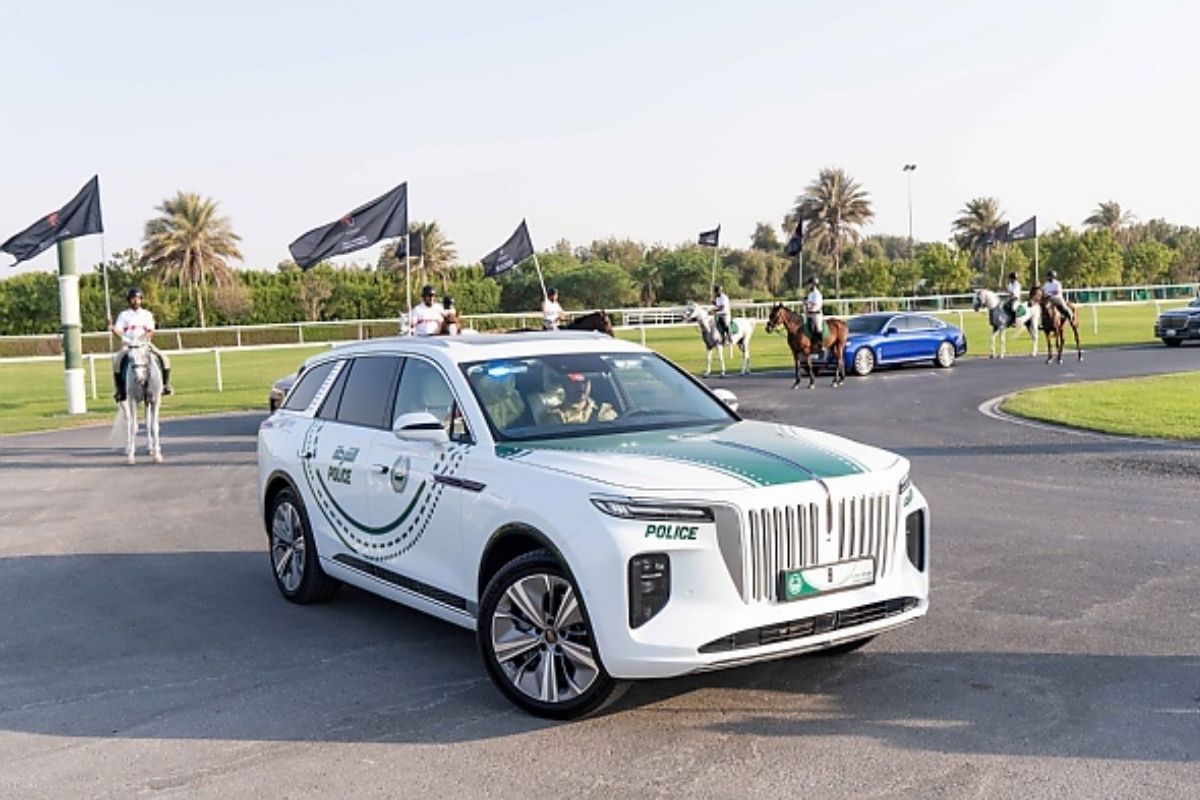 The car E-HS9 is produced by the Chinese automaker Hongqi and was the first electric car to the Dubai Police's collection of cars. This electric vehicle is a full-size SUV outfitted with cutting-edge safety technology. Adaptive cruise control, steering wheel memory, and an auditory vehicle alerting system are among the features of the vehicle.