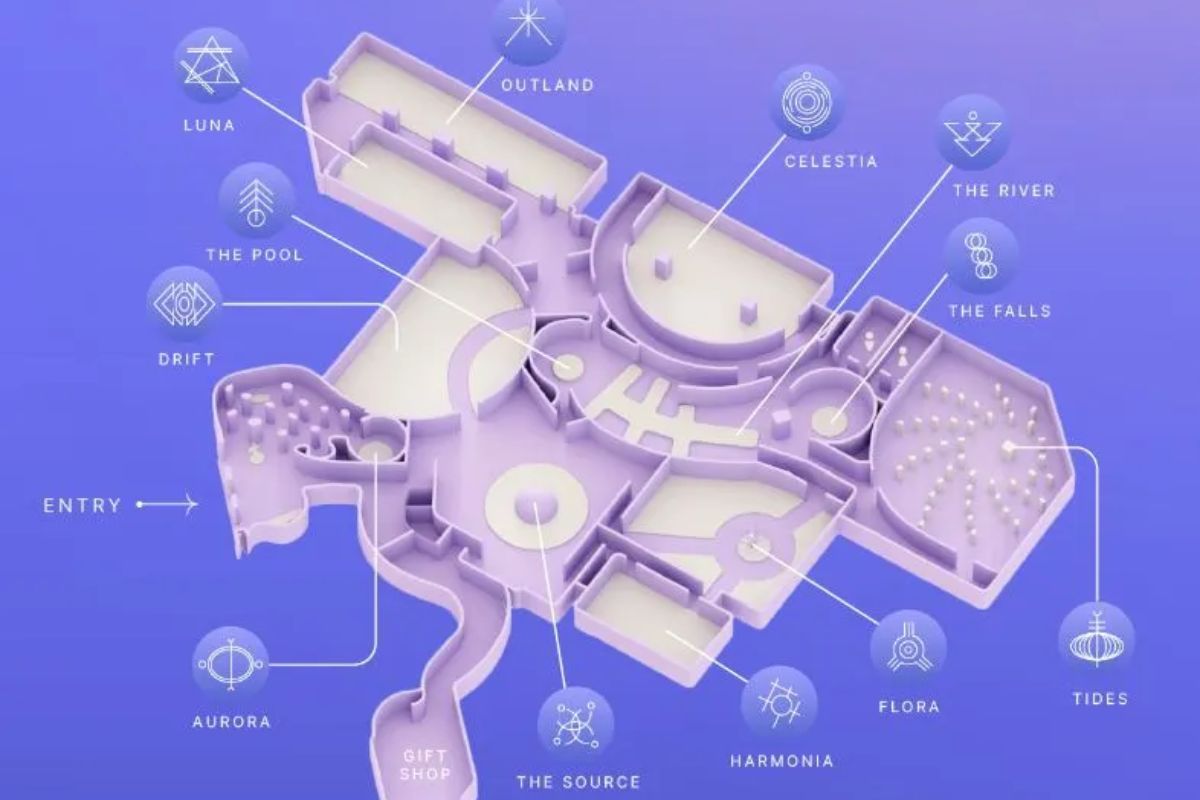 AYA has 12 out-of-this-world zones where you can explore luminous gardens, command galaxies, and dance with lights.