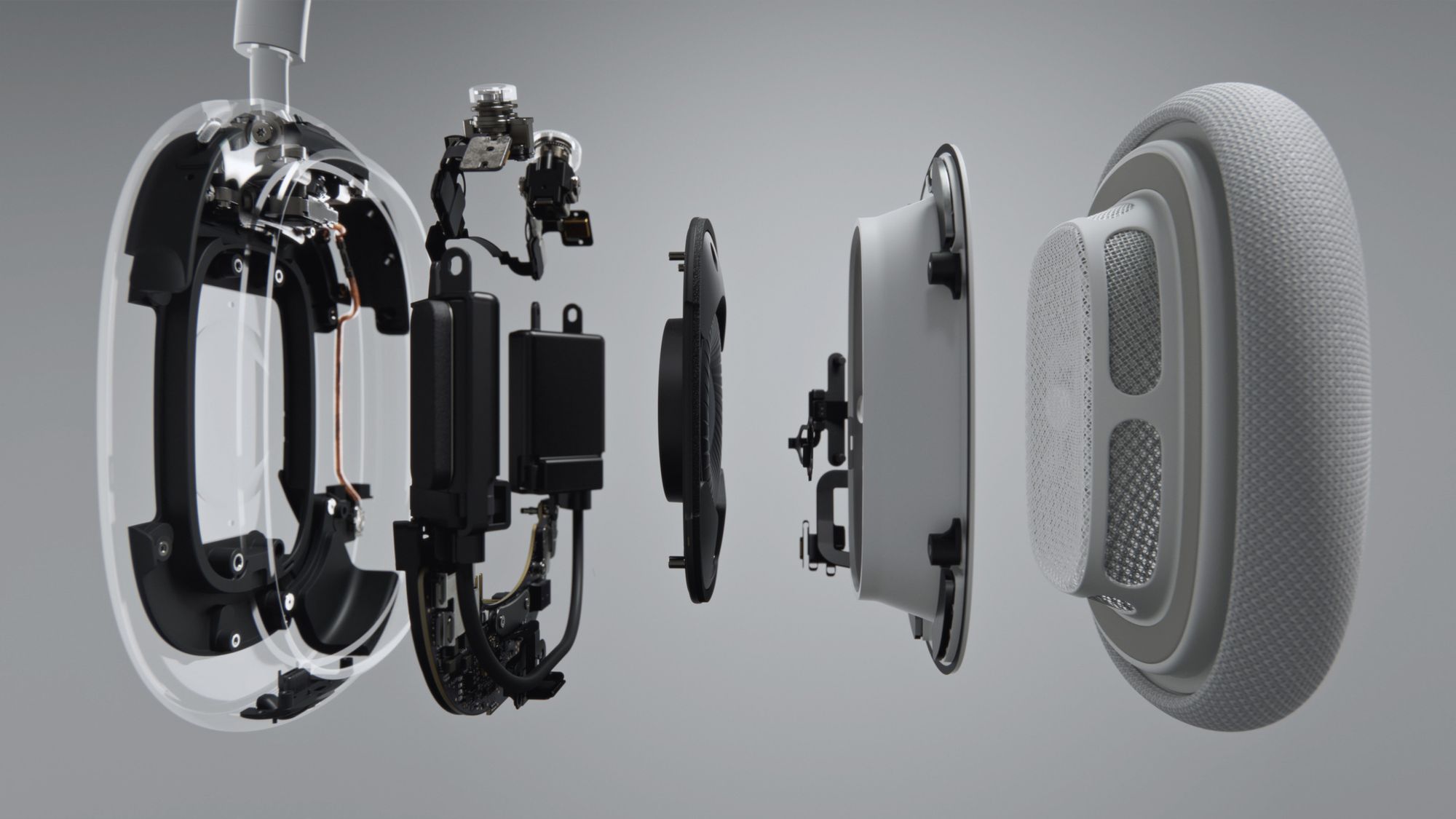 AirPods Max feature a 40-mm Apple-designed dynamic driver that provides rich, deep bass, accurate mid-ranges, and crisp, clean high-frequency extension so every note can be heard. A unique dual neodymium ring magnet motor allows AirPods Max to maintain total harmonic distortion of less than 1 percent across the entire audible range, even at maximum volume.1 Equipped with an Apple-designed H1 chip in each ear cup, a custom acoustic design, and advanced software, AirPods Max use computational audio to deliver the highest quality listening experience possible. Utilizing each of the chips’ 10 audio cores — capable of 9 billion operations per second — computational audio powers a breakthrough listening experience that includes Adaptive EQ, Active Noise Cancellation, Transparency mode, and spatial audio.