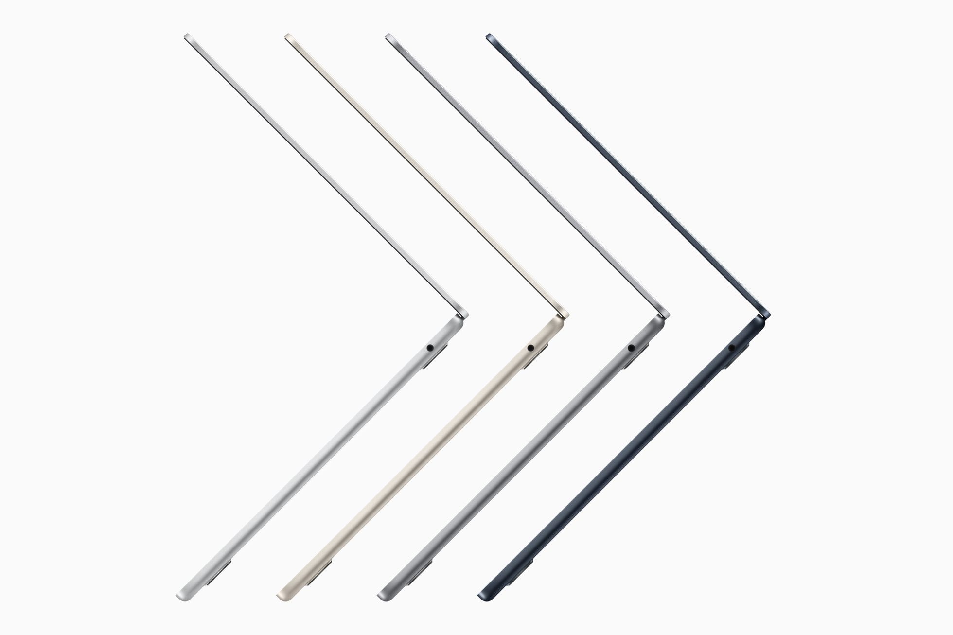 Built from the ground up around M2, MacBook Air has an entirely new design that is remarkably thin from every angle. It measures just 11.3 mm thin and is only 2.7 pounds, and features a durable, all-aluminum unibody enclosure that feels incredibly solid and is built to last. This thin and light design integrates its components so efficiently that it results in an astonishing 20 percent reduction in volume. With the power efficiency of M2, all of the capabilities of MacBook Air are built into a silent, fanless design. In addition to silver and space gray, MacBook Air is now available in two new finishes — midnight and starlight.