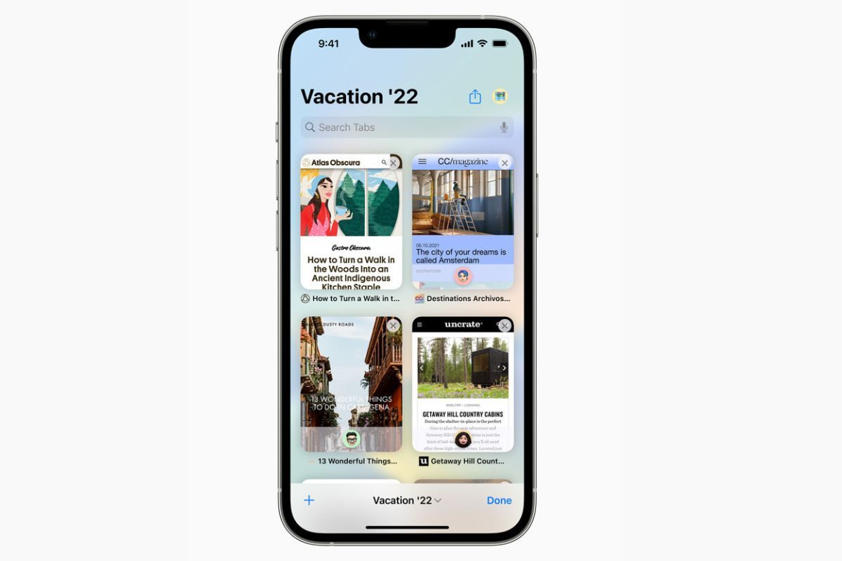 - Safari adds shared Tab Groups to share a collection of websites with friends and family, making it seamless to add tabs and see what others are viewing. Browsing in Safari is even safer with passkeys, unique digital keys that are easy to use, more secure, never stored on a web server, and stay on device so hackers can’t steal them in a data breach or trick users into sharing them. Designed to replace passwords, passkeys use Touch ID or Face ID for biometric verification, and iCloud Keychain to sync across iPhone, iPad, Mac, and Apple TV with end-to-end encryption. They will also work across apps and the web, and users can sign in to websites or an app on non-Apple devices using just their iPhone.