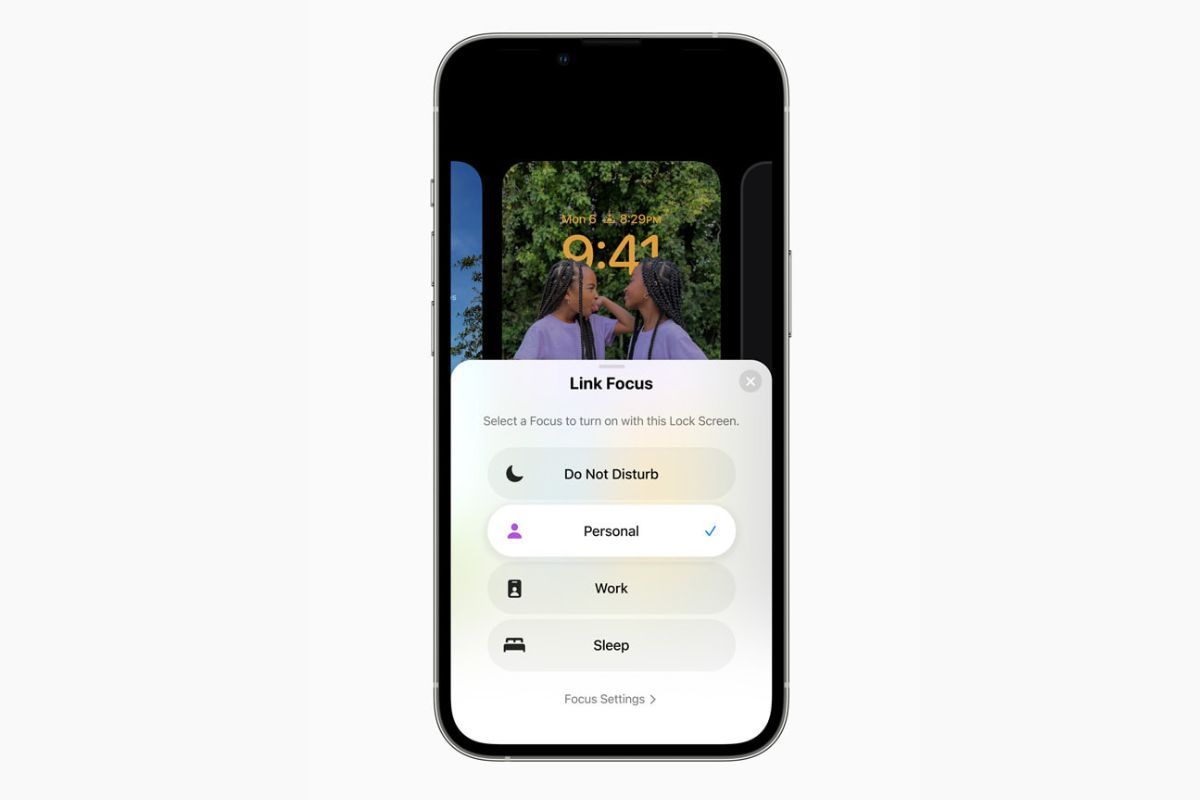 Focus is more powerful, easier to set up, and now connects to the Lock Screen, offering users a way to tie a Lock Screen wallpaper and widgets to a particular Focus. To activate a Focus, users can simply swipe to the corresponding Lock Screen. With Focus filters, apps like Calendar, Mail, Messages, and Safari can display only the content that is relevant to a user’s Focus, helping them to find better balance.