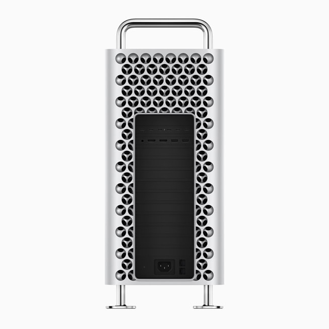 The wide array of connectivity in Mac Pro gets even better with eight built-in Thunderbolt 4 ports — six on the back and two on the top — which is twice as many as before. It supports up to six Pro Display XDRs, along with Wi-Fi 6E and Bluetooth 5.3, which come to the new Mac Pro for fast wireless connectivity. Additionally, Mac Pro includes three USB-A ports, two higher-bandwidth HDMI ports that support up to 8K resolution and up to 240Hz frame rates, two 10Gb Ethernet ports, and a headphone jack that enables the use of high-impedance headphones.