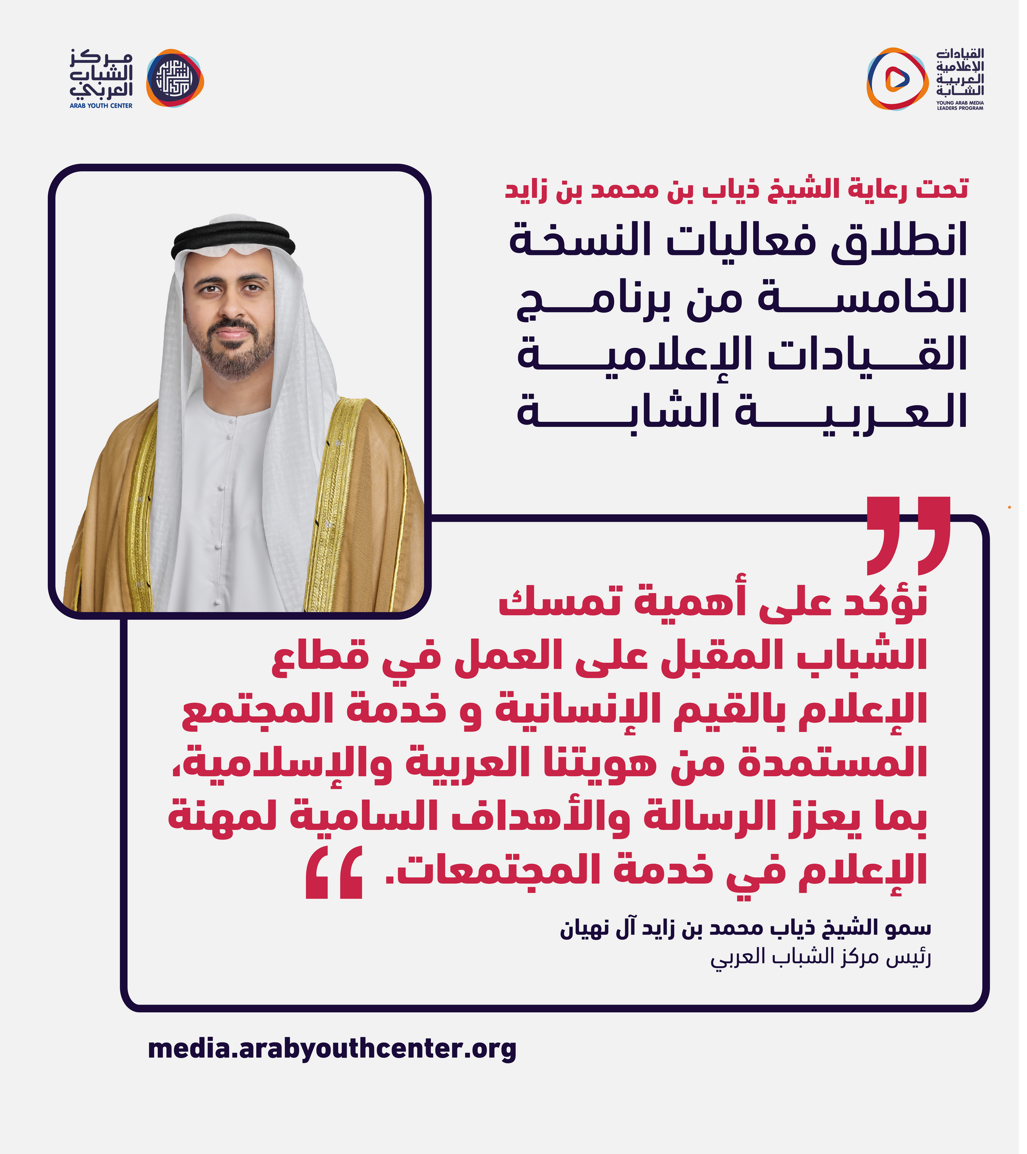 The Arab Youth Centre (AYC), under the patronage of its President H.H. Sheikh Theyab bin Mohamed bin Zayed Al Nahyan, launched the fifth edition of the Young Arab Media Leaders Programme.