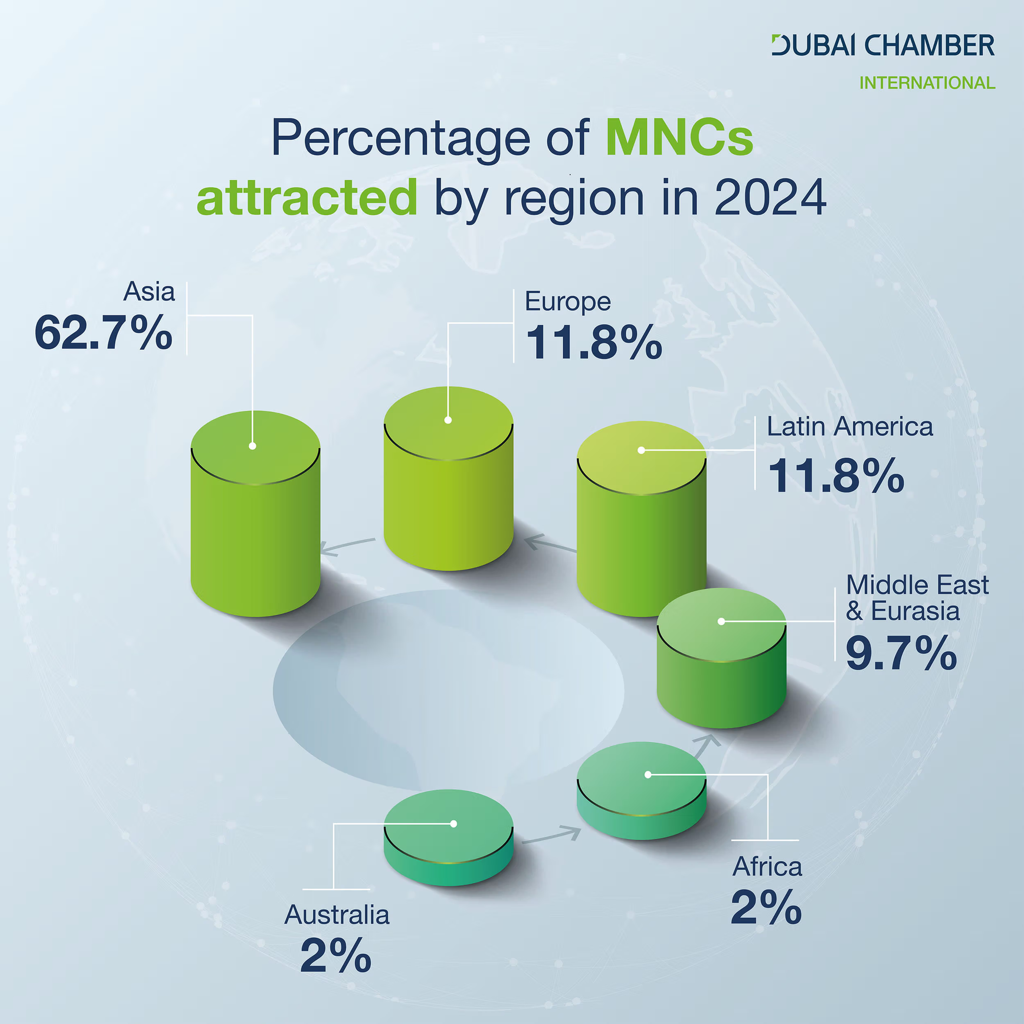 - Asia led with 62.7% of MNCs.