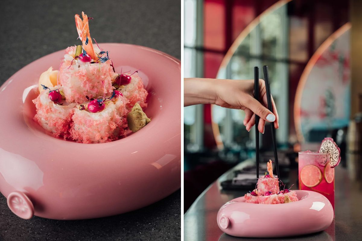 Ever thought you’ll find your sushi in pink? You can at KATA who has introduced a special Barbie-themed Pink sushi on its menu! This beautiful pink roll is prepared with salmon, prawn tempura, and avocado and is served on an adorable balloon-shaped plate. KATA is additionally offering a Barbie mixed cocktail to go with this culinary wonder.