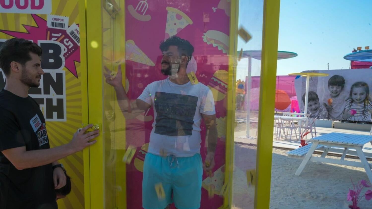 This is a grab and win booth, giving away prizes starting from Dh10 up to Dh1,200. Five lucky winners will get one month worth of free food. All you need to do is show the Food tab on Noon application. As you enter the Noon booth the wind starts blowing and the participant will have to try and catch as many coupons as possible. You then come outside and scratch the coupon to win prizes.