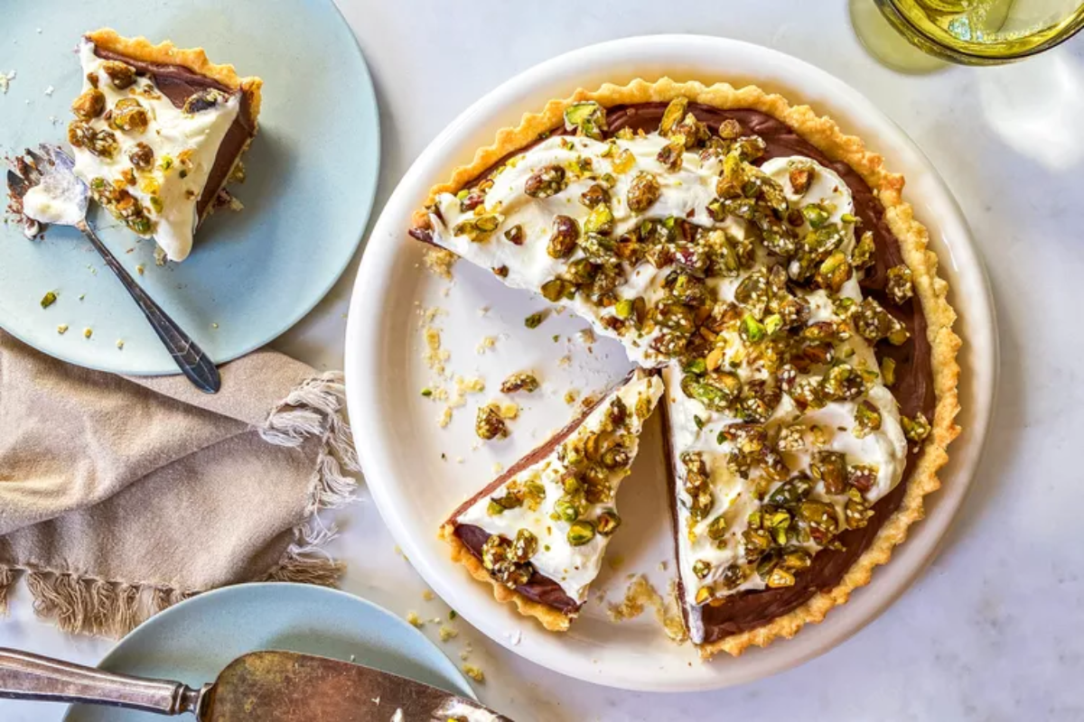 Chocolate Cardamom Cream Tart with Pistachio-Sesame Brittle