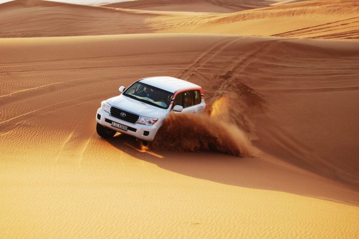 Dune bashing is a thrilling off-road experience that takes you on a wild ride through the towering dunes in a powerful 4x4 vehicle. The adrenaline rush is unmatched as the vehicle climbs steep dunes and navigates sharp drops. The ride is a test of both driver and passenger nerves, with every twist and turn offering a new surge of excitement. This heart-pounding experience is perfect for those looking to embrace the raw energy of the desert.