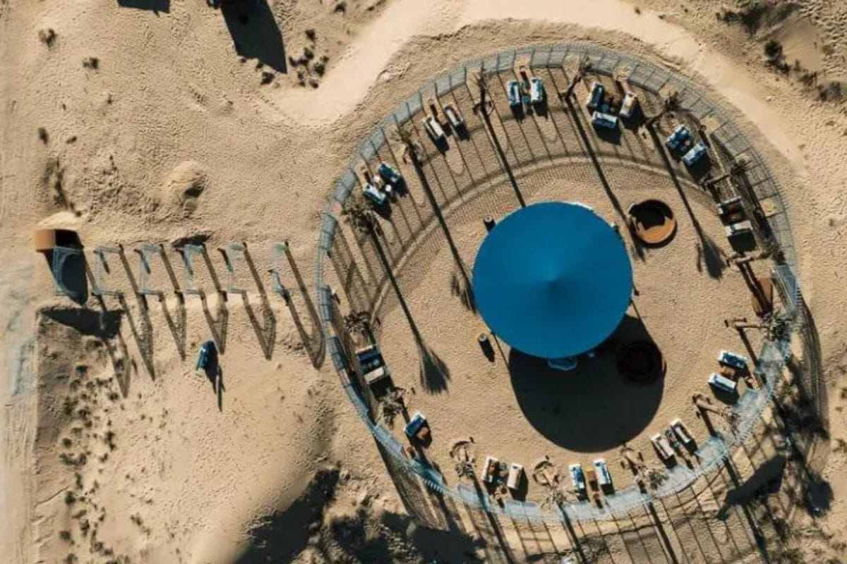 Hidden, a desert pop-up cafe, quickly became an Instagram sensation with its boho vibes and laid-back atmosphere. Featuring rope deck chairs, cozy campfires, and plush cushions on rattan sofas, the space is nestled amidst palm trees offering perfect shade. The star attraction is a mirrored installation, reflecting the serene desert backdrop, making it an unmissable photo opportunity for visitors seeking a peaceful escape with gourmet coffee.