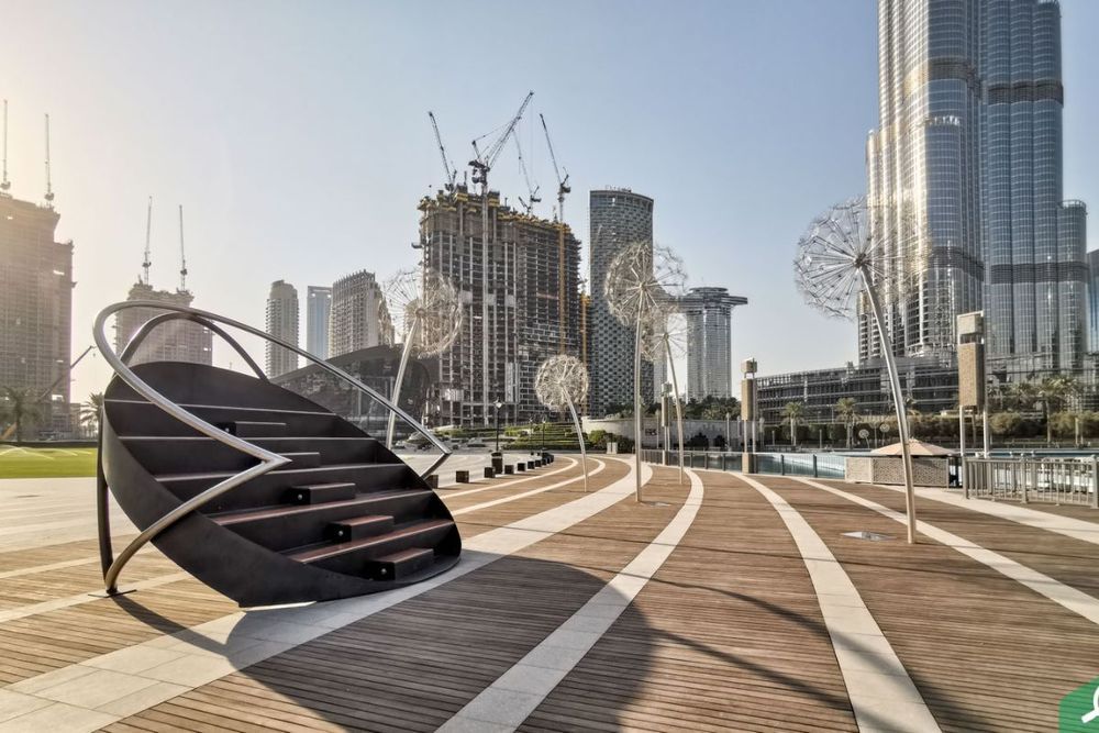 Burj Park is a tiny island that is connected to the main Downtown area by bridges and is located at the base of Burj Khalifa which is also known as the Dubai Fountain Lake. It is a pleasant place to take a short walk with a picturesque backdrop and is among the most relaxing things to do in Downtown Dubai. During night you can catch a glimpse of when the park is illuminated by cube-shaped lights, it is a magnificent view! The park is open at all hours of the day and is free of cost. During winter, The Burj Park hosts food truck festivals, art soirées and other events. Since the Burj Park overlooks the Dubai Fountains, it's a great place to watch the nightly light and water show. It also has unobstructed views of the Burj Khalifa, so visitors strolling down the verdant green strip will be treated to some stunning scenery. And guess what, pet owners? Burj Park is one of the few pet-friendly parks in Dubai!