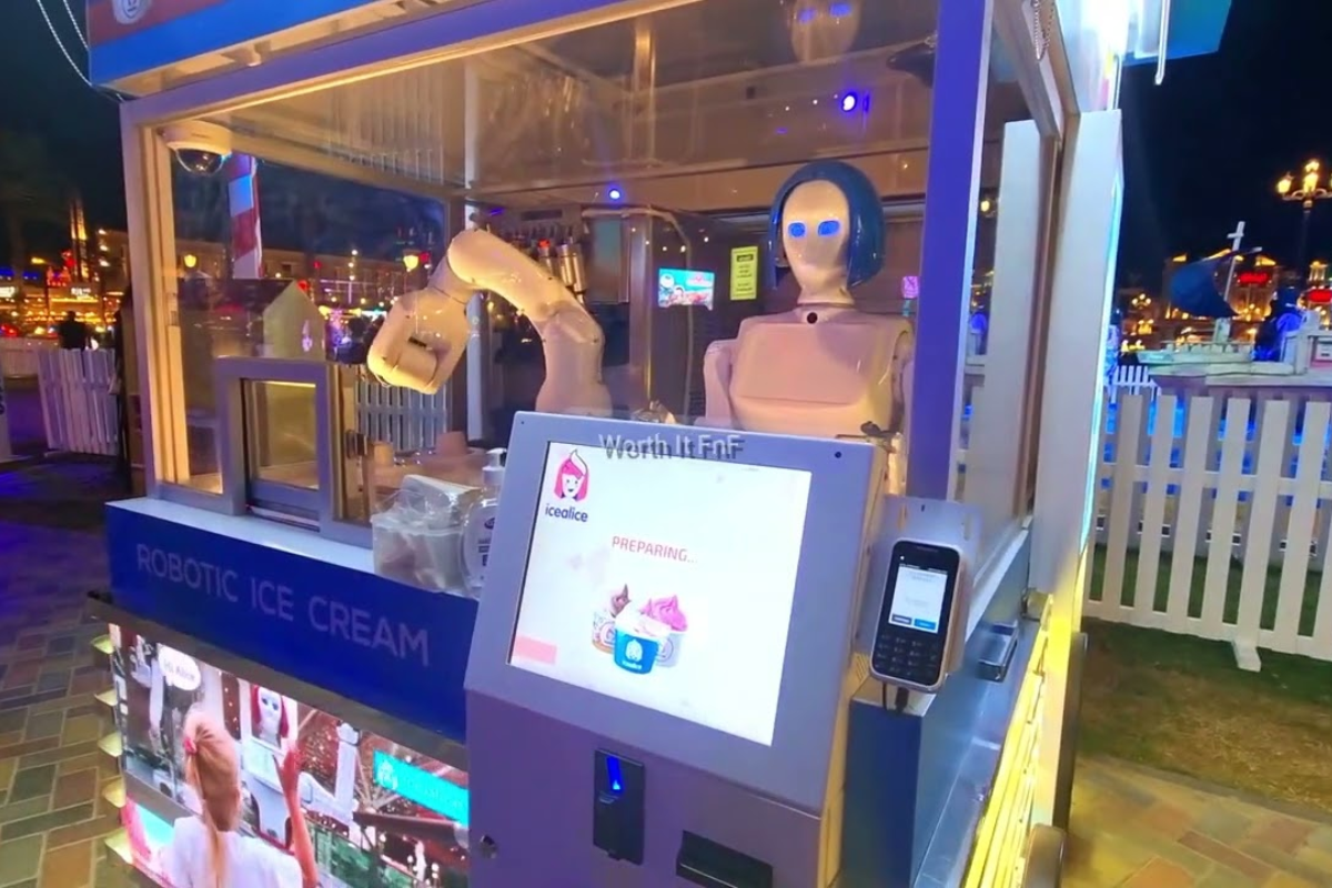 Icealice is the world’s first mannequin-AI robotic vending machine. The robot is named Alice, and besides serving you ice cream, it can also talk to you and answer your questions using recognition and sensory tools throughout the entire process until the collection of the selected product. Now that’s a unique experience!