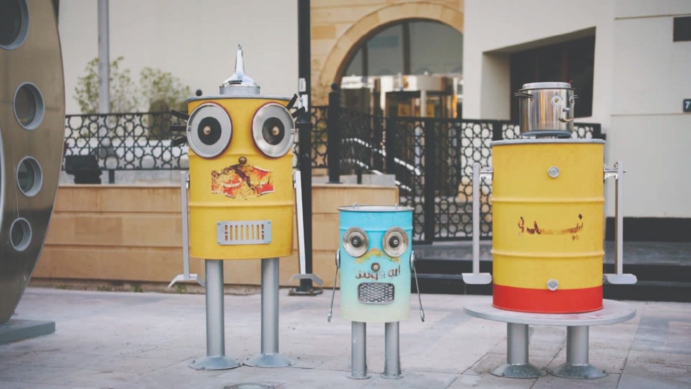 Other installations featuring colorful chicks, a cassette player and a Teela, a glass ball similar to a marble used by Emirati children to play a popular traditional game, reconnect people with their childhood. Also displayed are artworks featuring coffee cups, a ‘paper’ boat, and robots made using metal cans that honor Dubai’s heritage and celebrate its vision for the future The international artists who participated in developing the artworks included: Polish artist Martin Kot; French architect and digital artist Cyril Lancelin; Massimo Sirelli, founder and art director of a creative studio and a professor at Istituto Europeo di Design di Torino (IED); and Viacheslav Heyderikch, a Ukrainian artist of functional and 3D graphics and animation.