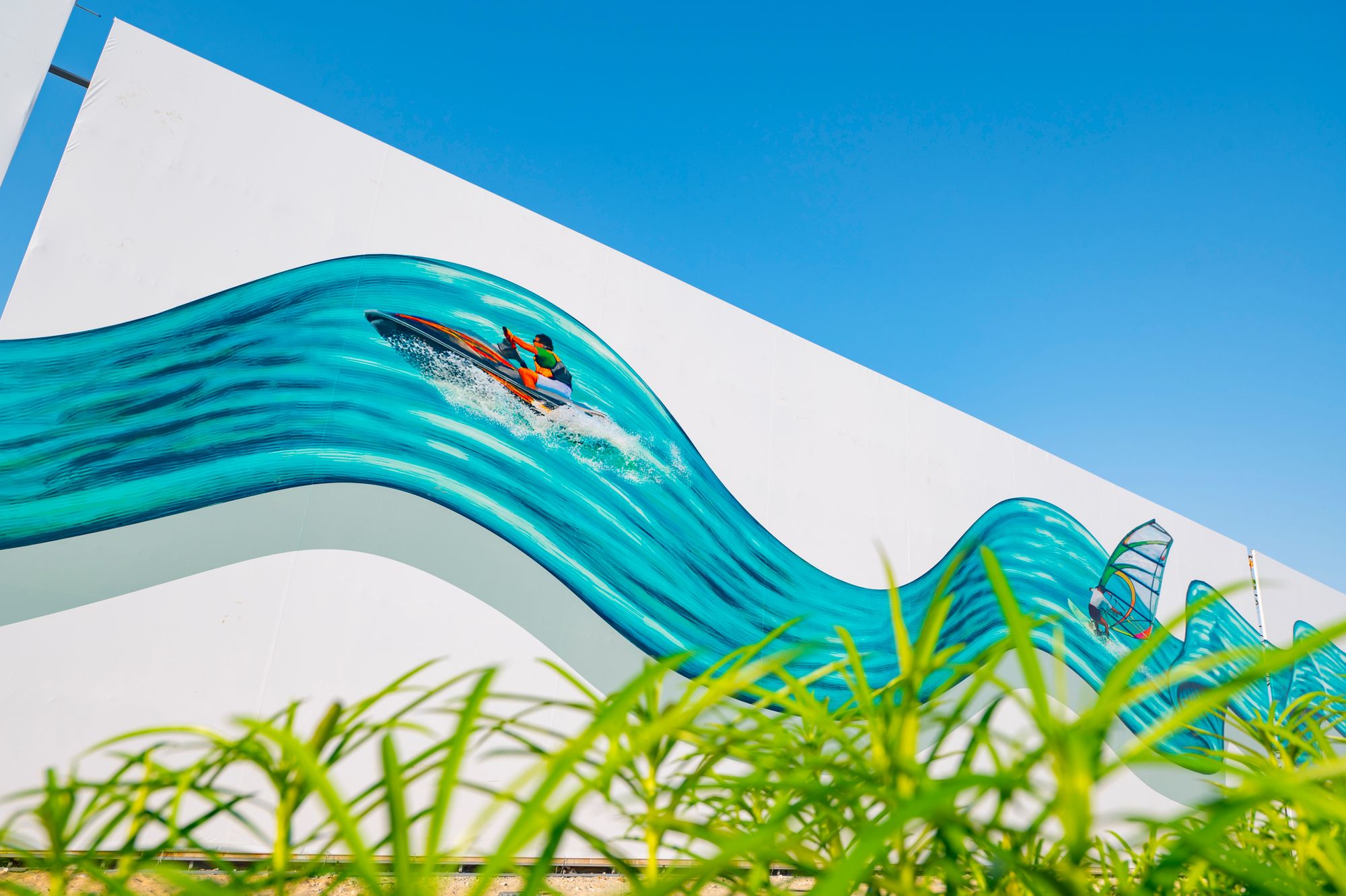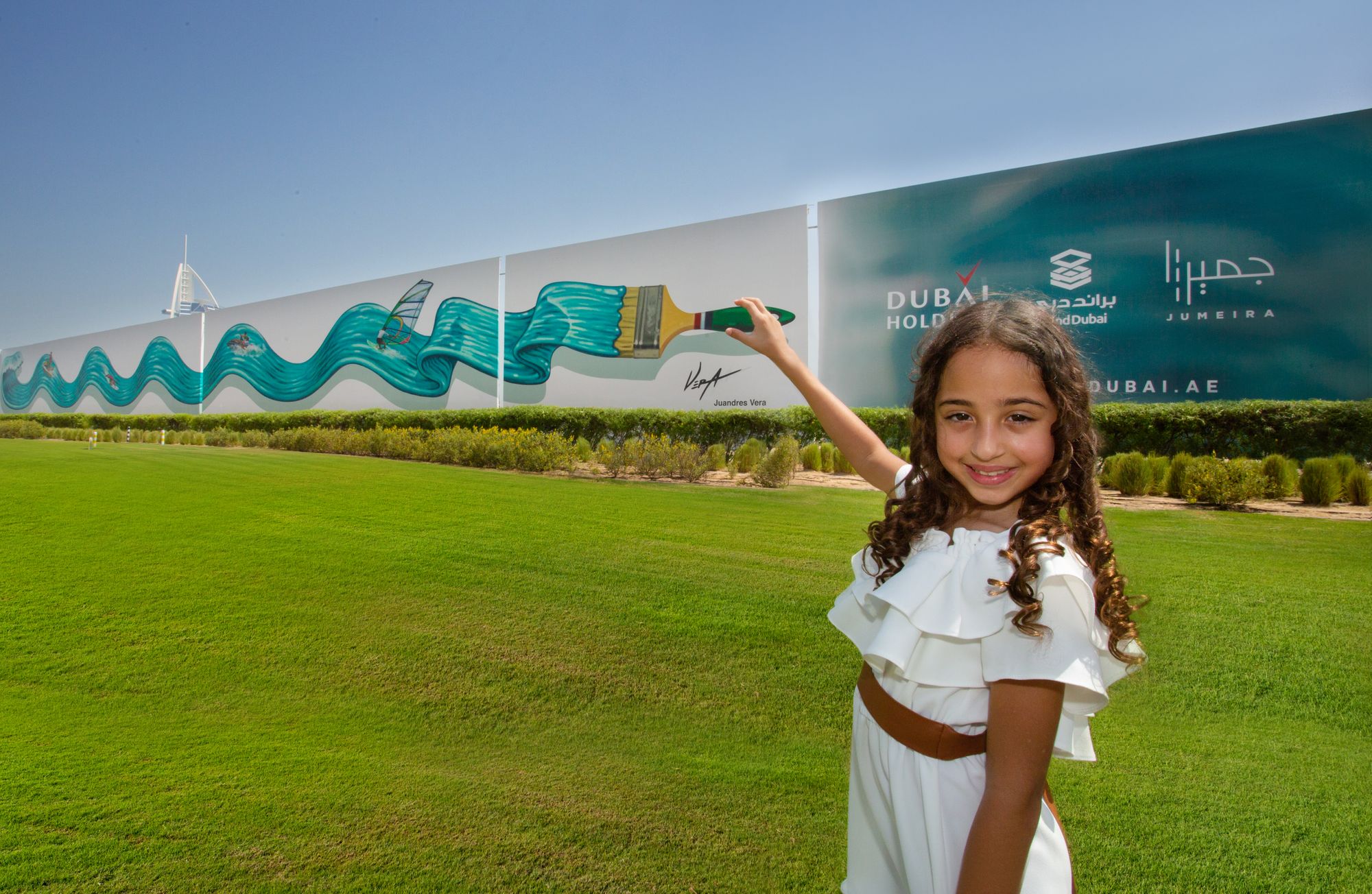 Displayed on a 236 X 12 metre hoarding, the artwork created by 3D international artist Juandres Vera features an image of a painting brush creating long strokes of sea waves ridden by surfers. The immersive artwork, inspired by surfers on Jumeira beach, allows viewers to be part of a 3D illusion of them creating the waves with a brush.