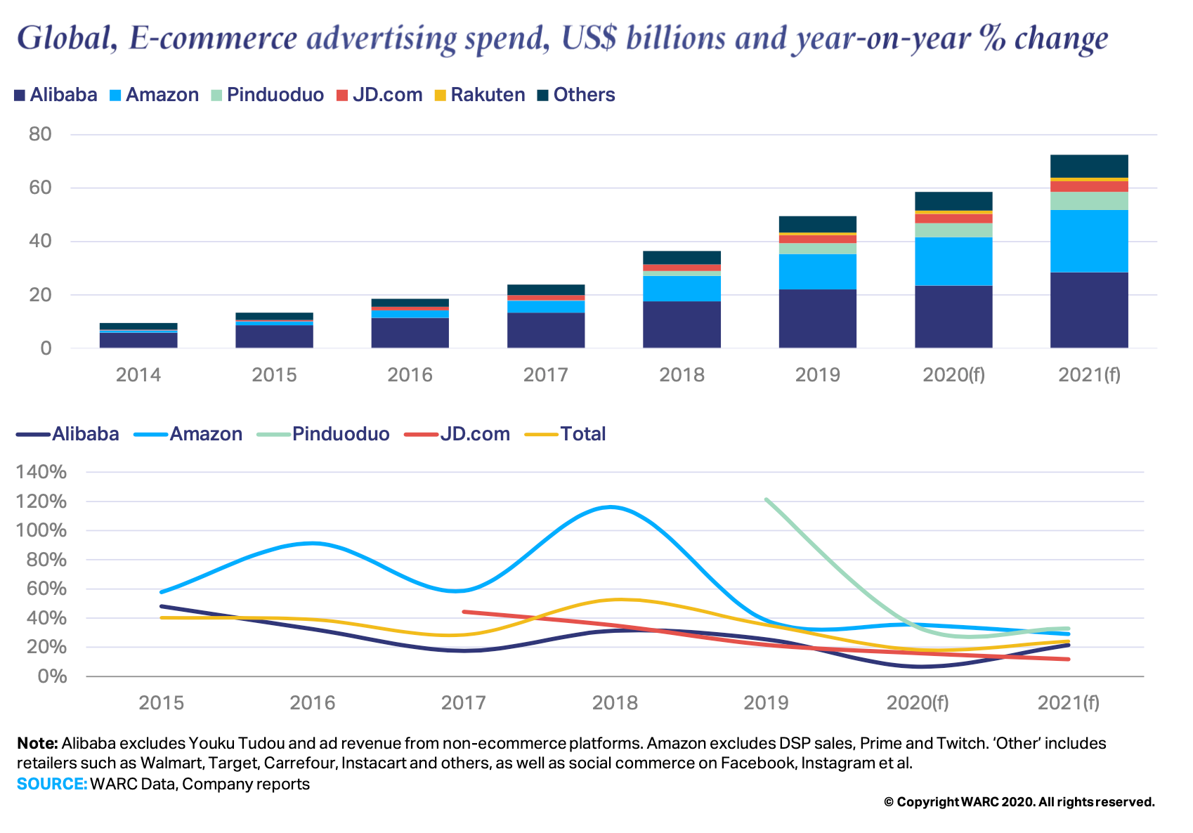 WARC, the global marketing intelligence service, released its latest report that highlights the rise in advertising spending on e-commerce platforms- as brands look to capitalize on the boom in online shopping, as a result of the Covid-19 outbreak. Advertising investment across e-commerce sites such as Amazon, Tmall and Rakuten, omnichannel retailers such as Walmart and Carrefour, and social commerce on platforms such as TikTok is set to increase 18.3% worldwide, growing 30 times faster than the wider online ad market and in stark contrast to a forecast fall of -8.1% for the total advertising industry this year.