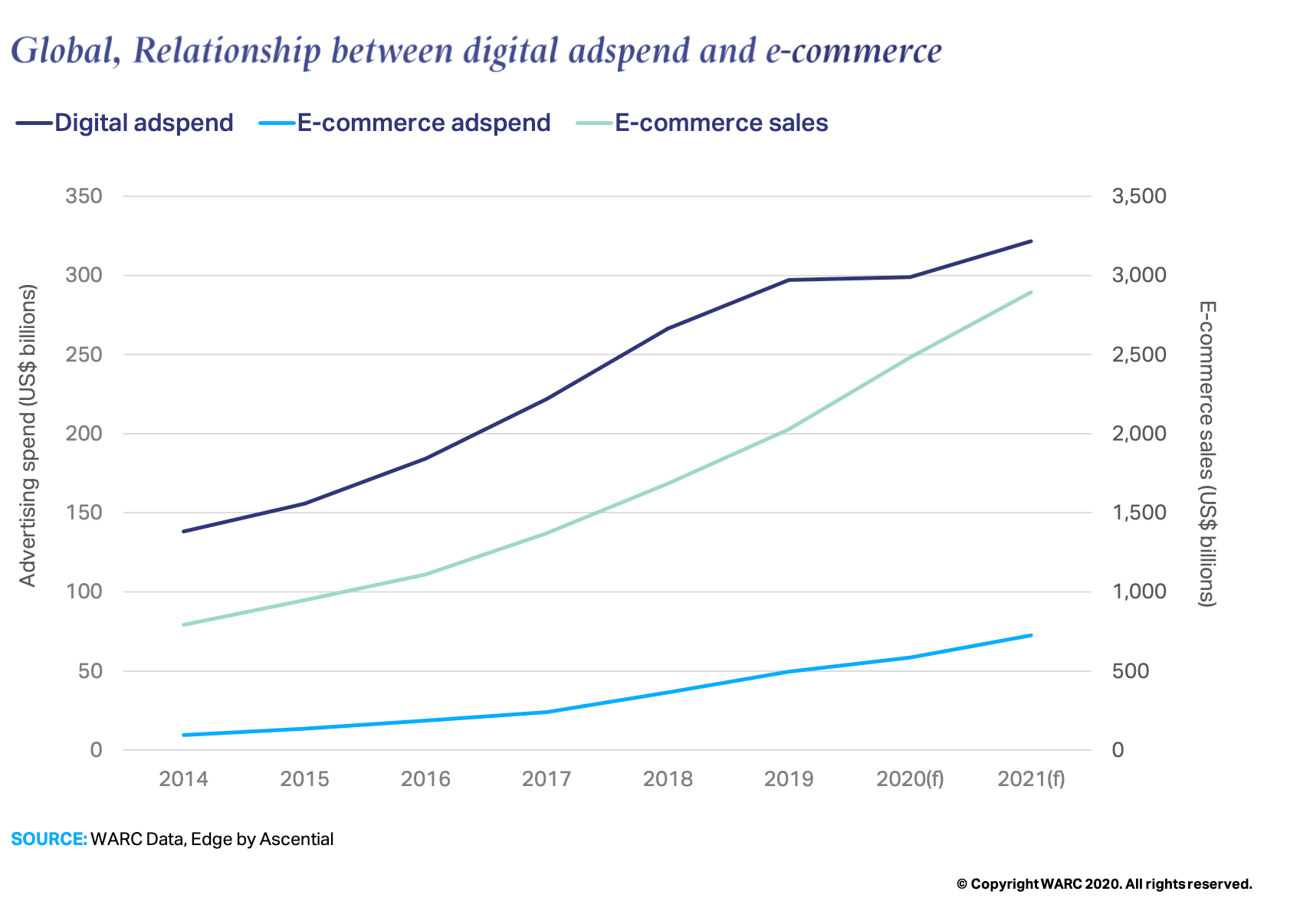 - Prior to 2020, ad investment across all internet formats was growing at a similar rate to e-commerce sales value worldwide.