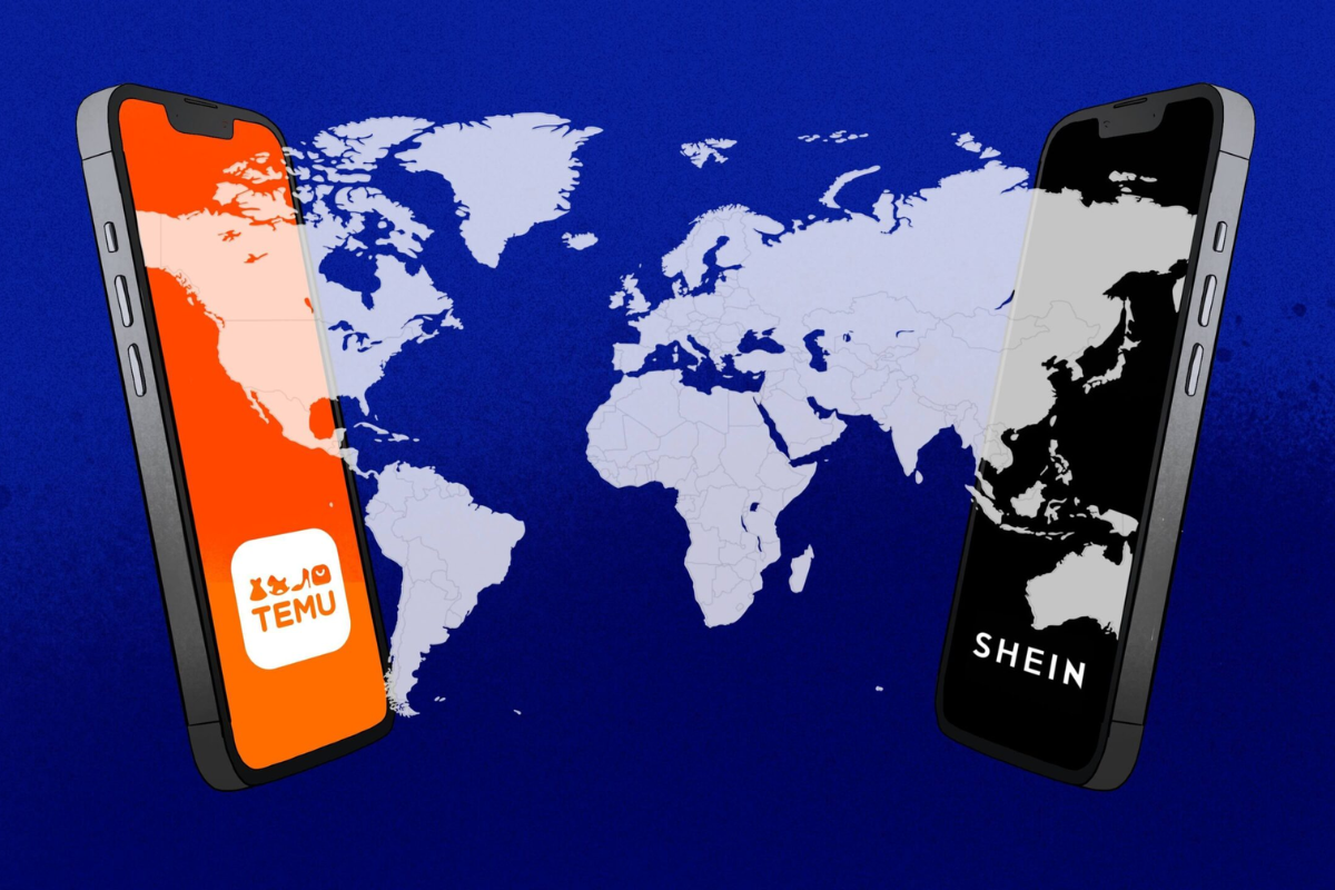 Shein and Temu apps side-by-side, showing personalized recommendations and gamified shopping elements.