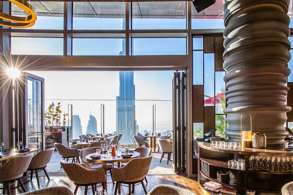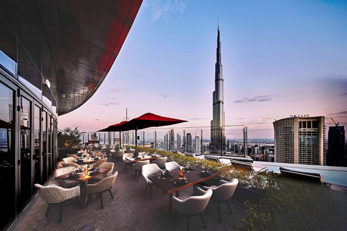 CÉ LA VI Dubai is located on the 54thfloor of Address Sky View Towers and hence provides a beautiful aerial view of the city. You can enjoy a panoramic vista of Dubai's majestic skyline. Awe-inspiring views of well-known attractions like the Burj Khalifa, the Dubai Fountain, and the glittering Arabian Gulf can be enjoyed from the massive floor-to-ceiling windows. This creates an enchanting backdrop for an extraordinary dining experience. You can also see one of the best sunsets in Dubai at their terrace.