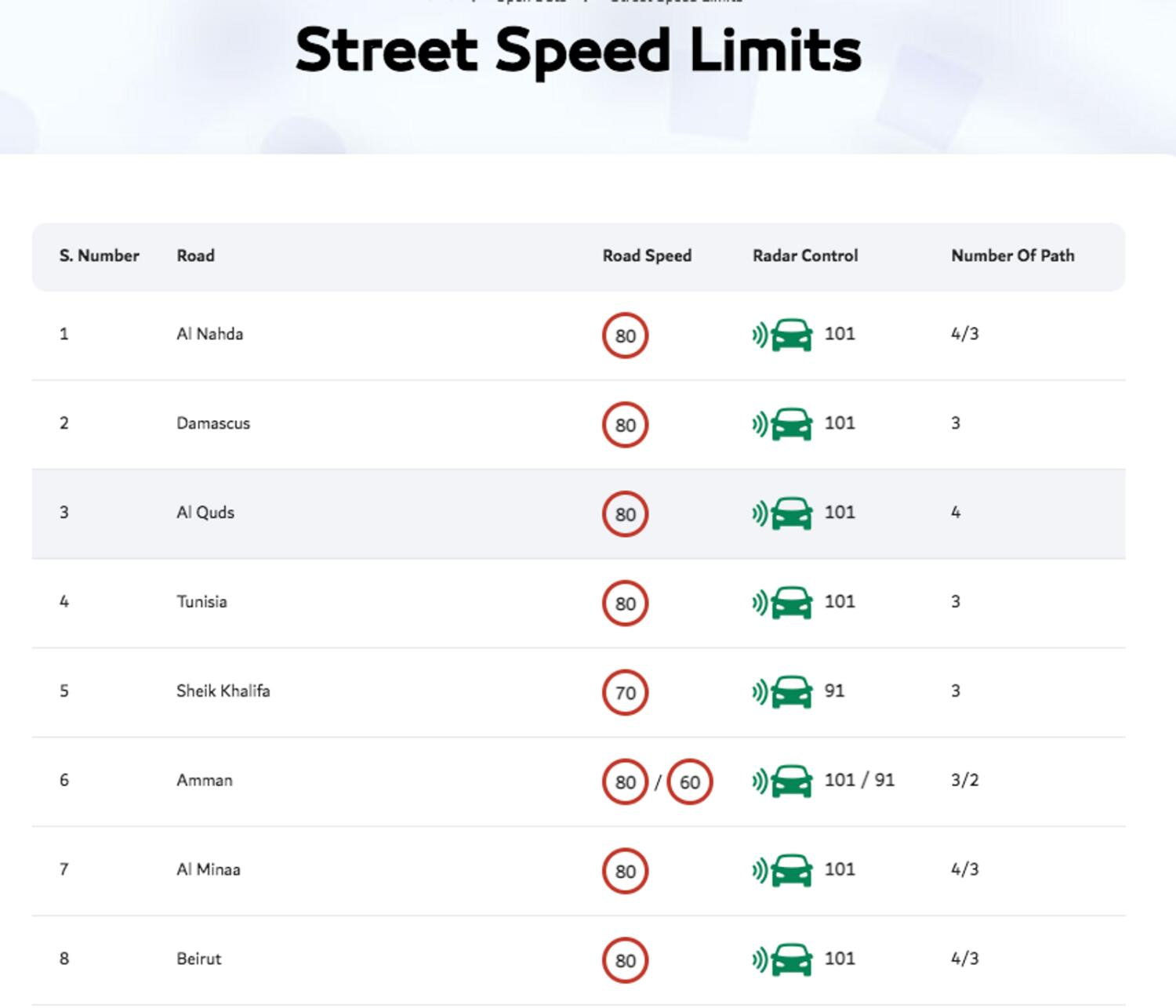 The Dubai Police have a section on their website that details the speed limits on various roads. As per the latest update made in September, the limits range from 60 to 120kmph. On Mohamed Bin Zayed and Emirates roads, the speed limit remains 110kmph, while on several internal roads, it is set at 70kmph.