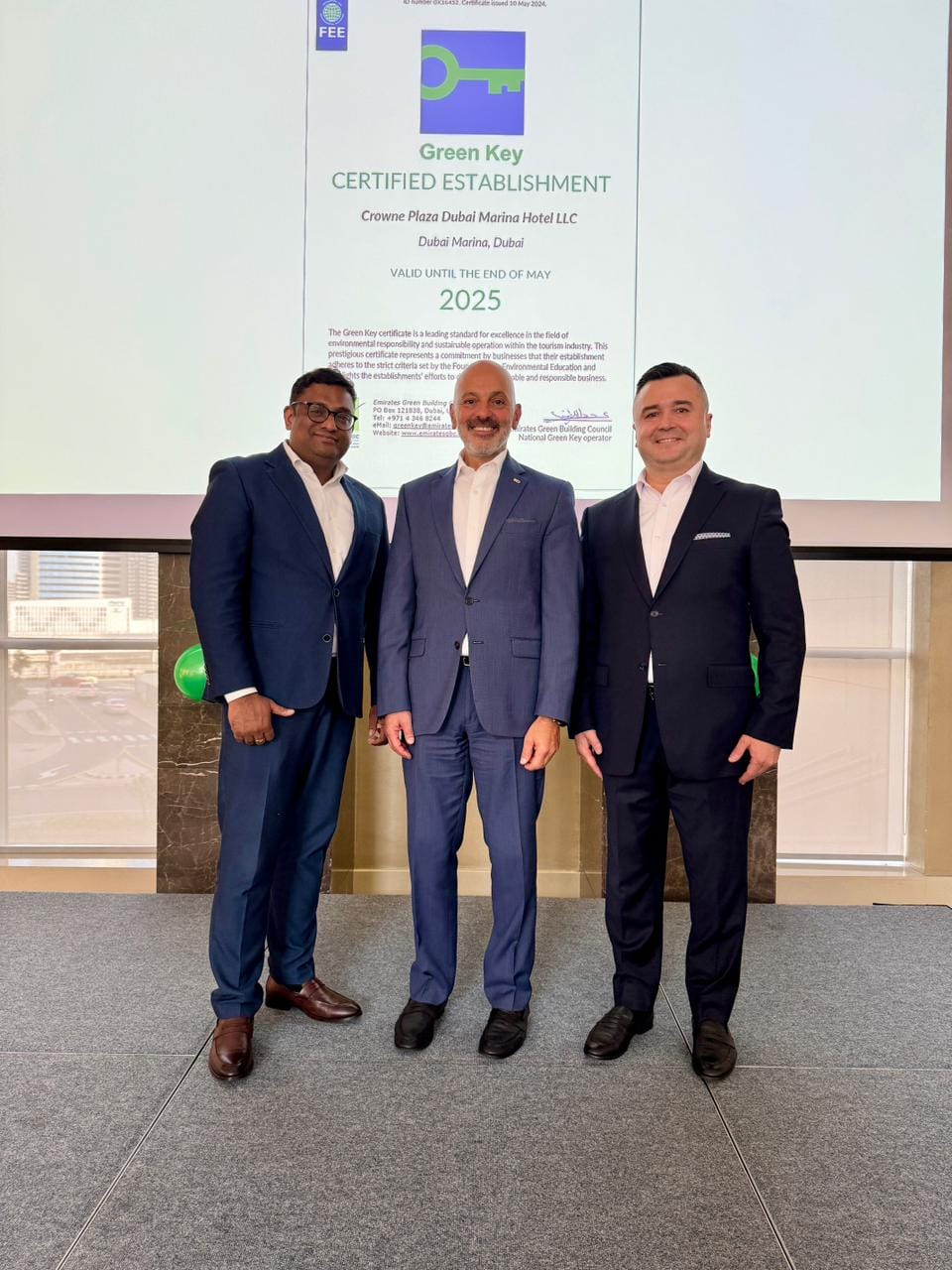Crowne Plaza Dubai Marina, an IHG Hotel, announces its achievement of the prestigious Green Key International Certification. This prestigious recognition marks Crowne Plaza Dubai Marina as the first IHG hotel in the UAE to be awarded the Green Key certification, underscoring its unwavering commitment to environmental responsibility and sustainable operations within the tourism industry.