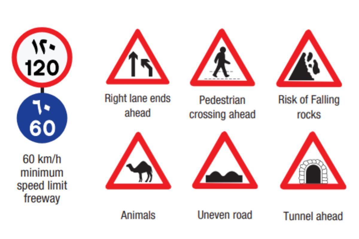 Most of the road signs uses symbols to convey messages easily to the motorists. Familiarizing with these visual cues will help you understand instructions better. Here are some of the common symbols you can find on Dubai’s sign boards.