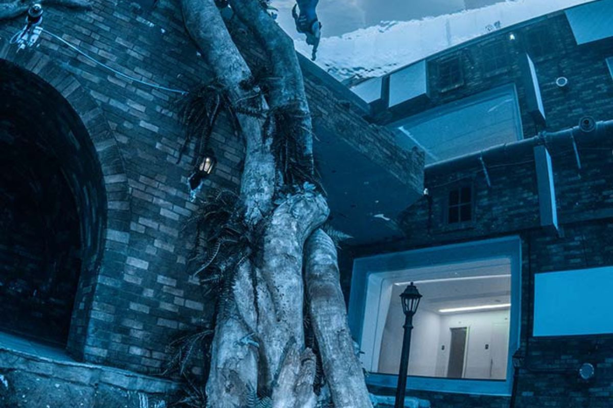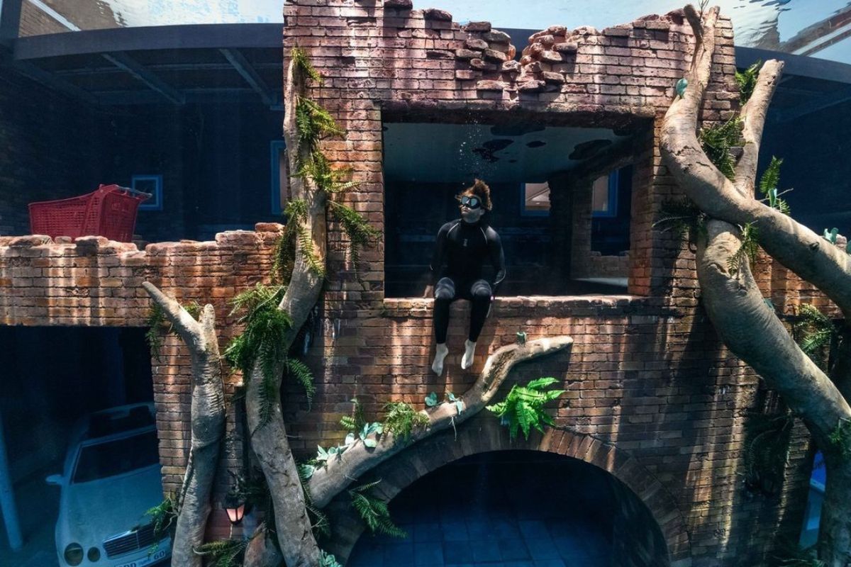 Although the swimming pool looks unassuming at a glance from a distance, what waits inside is far from it. The intentionally designed sunken city stays true to its name with actual streets and furnished apartments underwater. Talk about dedication to their craft!