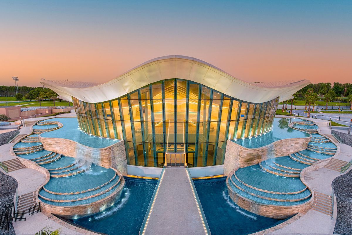 You won't have to look twice to spot it against the horizon. The architectural masterpiece stands elegantly mimicking the shape of an oyster, an ode to the pearl diving heritage of Dubai. Surrounded by a pool on all sides that come together to form gracefully cascading waterfalls near the entrance. The modern structure gives the visitors a grand entrance indeed. The structure looks especially alluring when darkness falls, lighting up the building and showing off it’s oyster-shell shape with a spectacular glow.