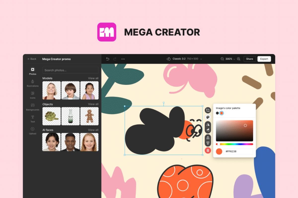 Mega Creator serves as an intuitive online graphic editor ideal for those without design experience. It offers an extensive library of millions of design elements like icons, illustrations, photos, and backgrounds, all easily integrated into your projects through drag-and-drop functionality.