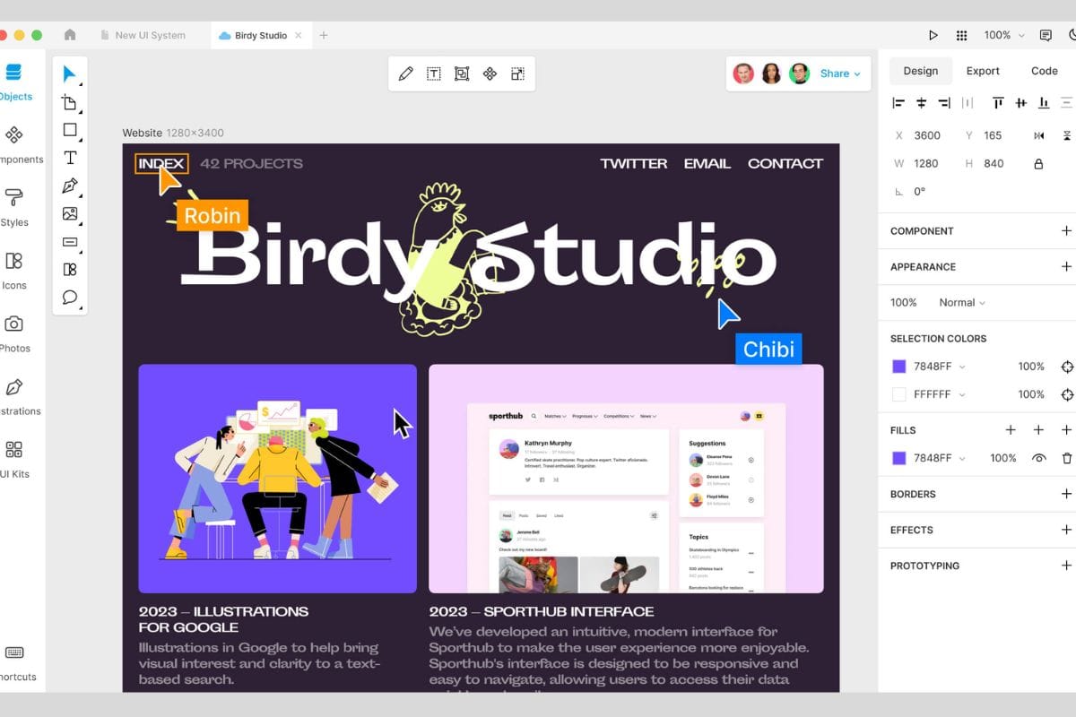 Figma is a favorite among many major brands for web design, thanks to its robust collaborative platform. It offers live chat and commenting features that simplify the process of designing websites with your team. With Figma, you can create live prototypes to test and refine features, even allowing stakeholders to preview the site before it goes live. Although packed with advanced features, Figma remains user-friendly, suitable for those with some experience in design software.