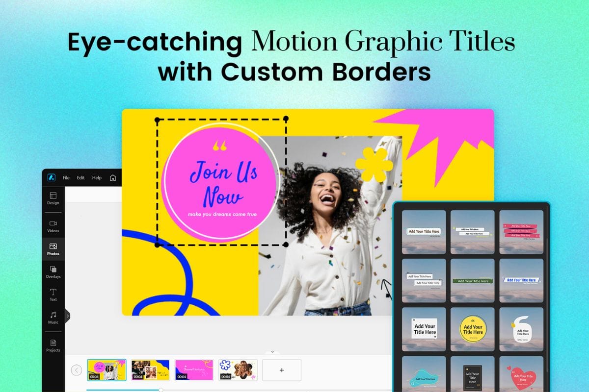 - Choose from professionally designed text templates, customize them to perfection, or start from scratch using a vast array of design assets like stickers, frames, and overlays.