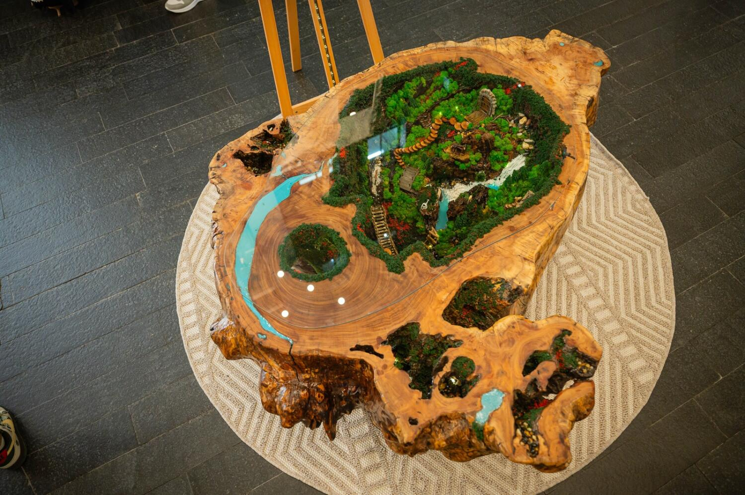 This impressive artwork, crafted by mother-son duo Mustafa and Seema Hamed, weighs a staggering 250 kilograms and took an entire year to complete. Using a single piece of mahogany wood sourced and shipped from the United States, the pair created a piece inspired by one of their favorite destinations: Bali.