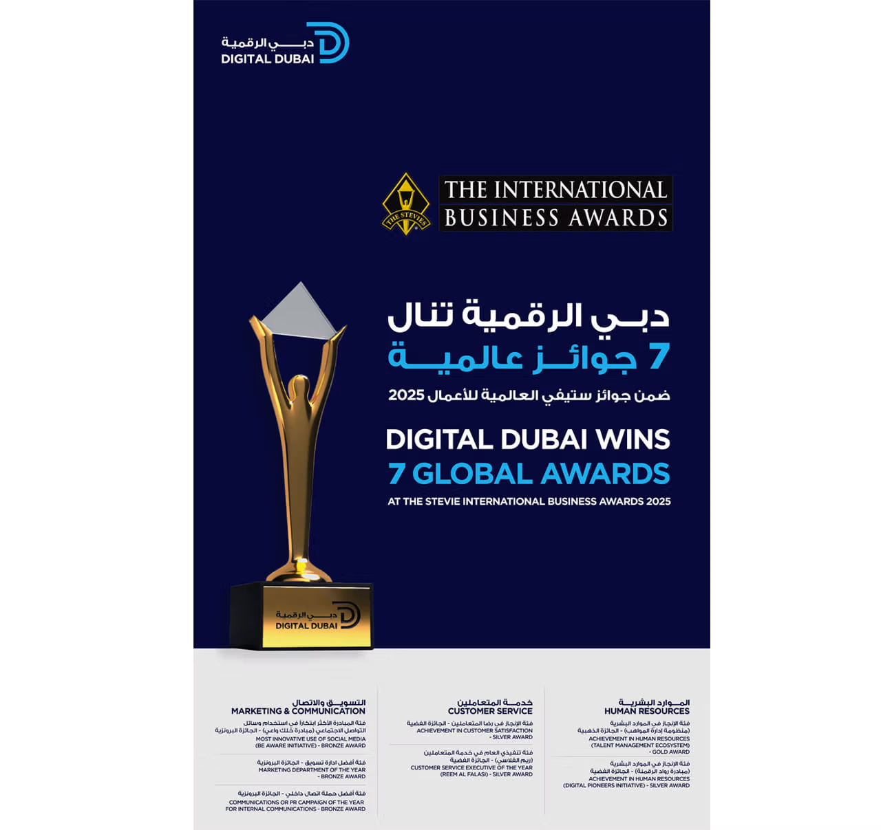 Digital Dubai’s multiple wins highlight its continued drive to set new benchmarks in excellence, customer experience, and organisational growth on both local and international levels.