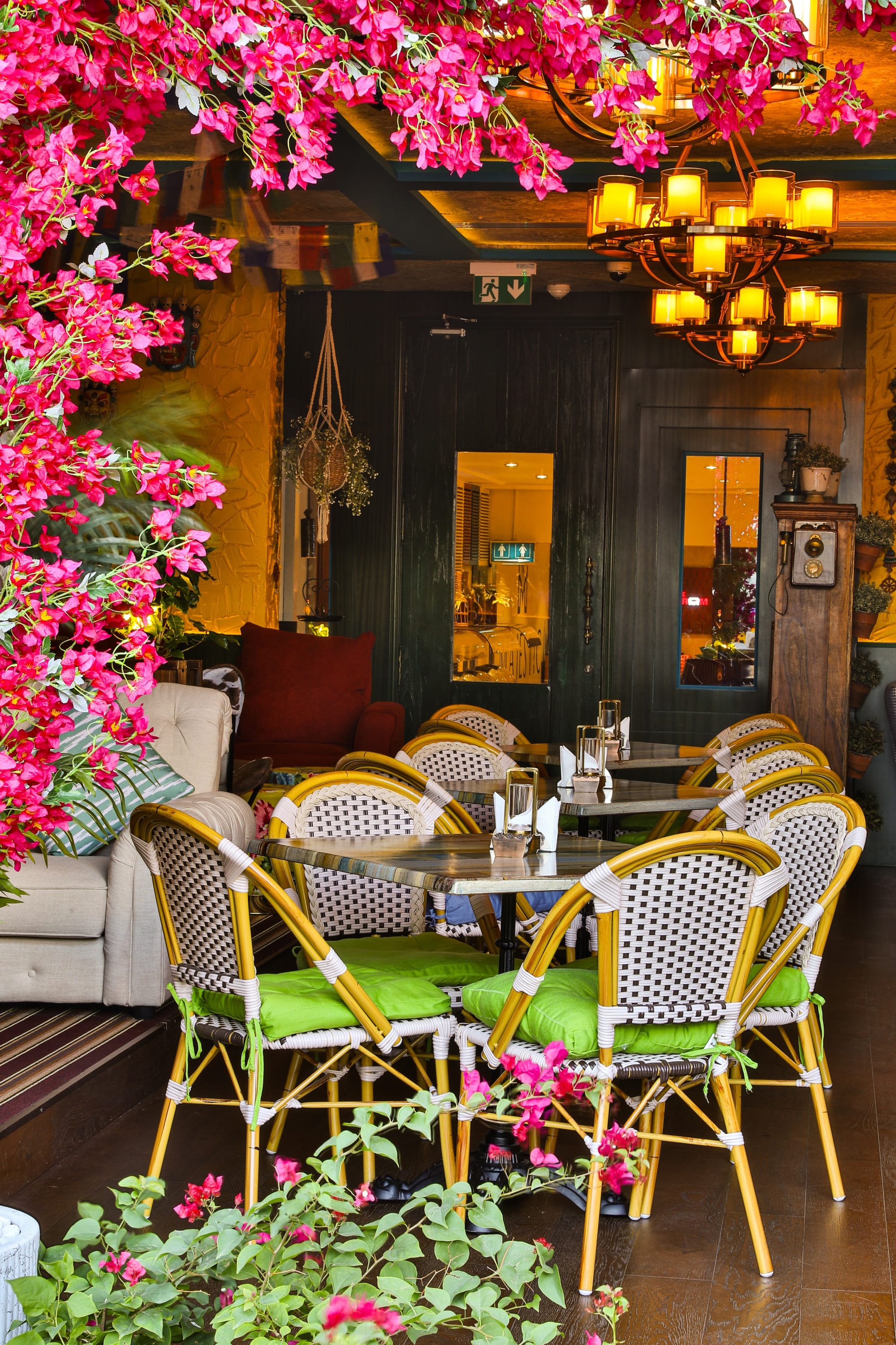 The outdoor seating area further elevates the ambiance, offering a picturesque view complete with a calming water fountain and beautifully arranged bougainvilleas, allowing guests to savor their meals while embracing the lively spirit of Shimla’s Mall Road. Adding to this vibrant atmosphere, Bollywood songs play softly in the background, enhancing the overall experience with a nostalgic touch. With its vibrant street vibes and tranquil natural decor, Pahadi provides the perfect backdrop for enjoying flavorful dishes in a unique mountain-inspired escape.