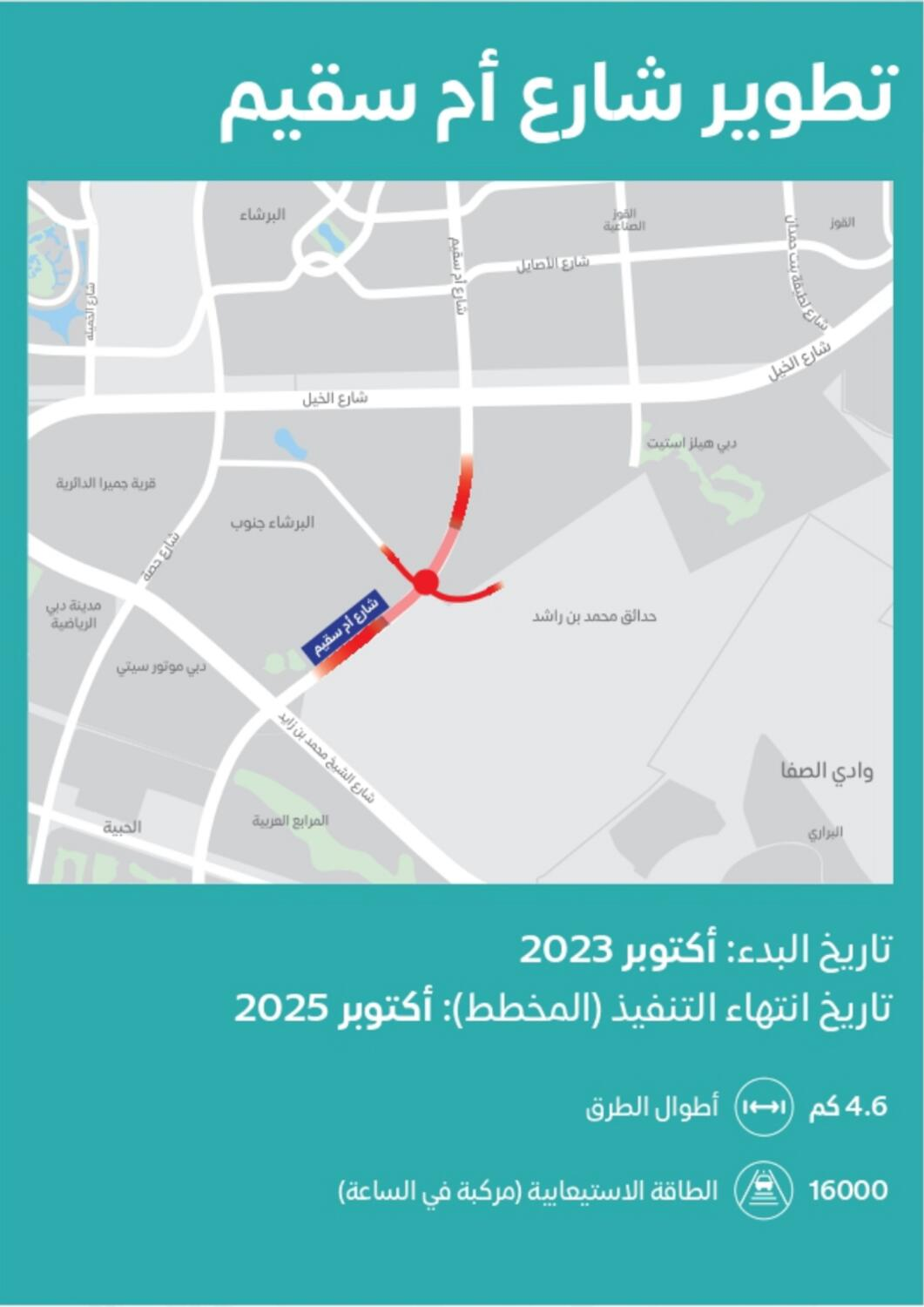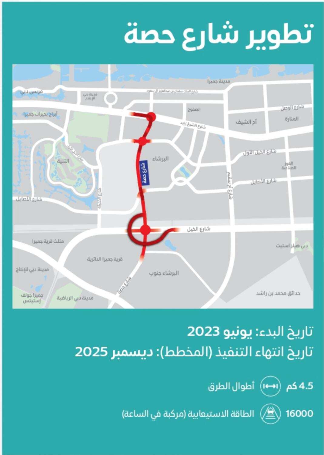Hessa Street will be upgraded to increase its capacity to 16,000 cars per hour throughout the 4.5 km stretch between its intersection with Sheikh Zayed Road and that with Al Khail Road.