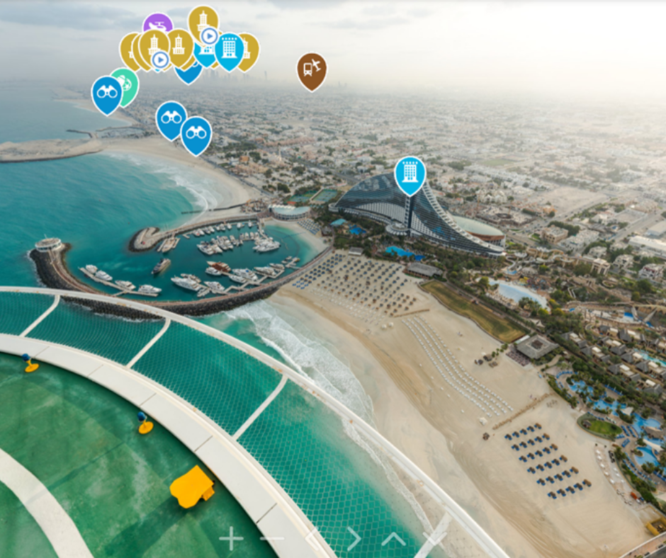 On Dubai 360, there are more than 1200 exclusive views to explore, and when you choose a landmark, click on the icons to reveal more information after which you will be taken on an interactive tour.