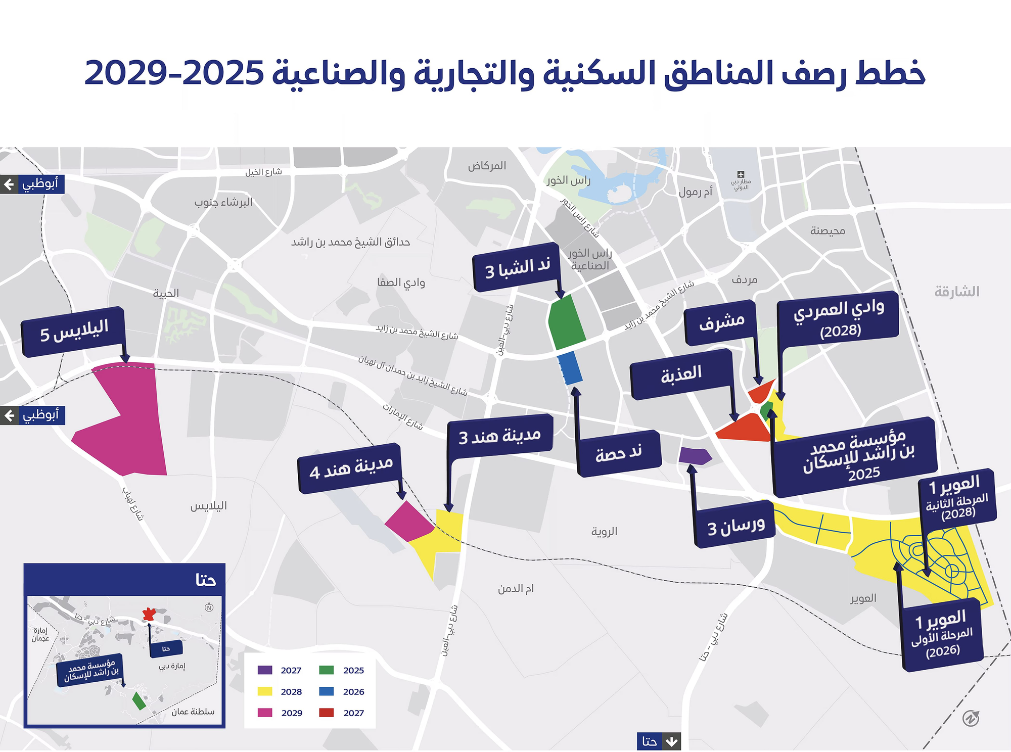 The Roads and Transport Authority (RTA) will manage the development, which includes phased construction in several key areas. In 2025, Nad El Sheba 3 and Al Amardi will see new roads to support the Mohammed bin Rashid Housing Establishment’s housing projects. By 2026, 92 km of internal roads are planned for Nadd Hessa and Al Awir 1. Additional projects will follow, with Hatta, Al Athbah, and Mushrif included in the 2027 developments.