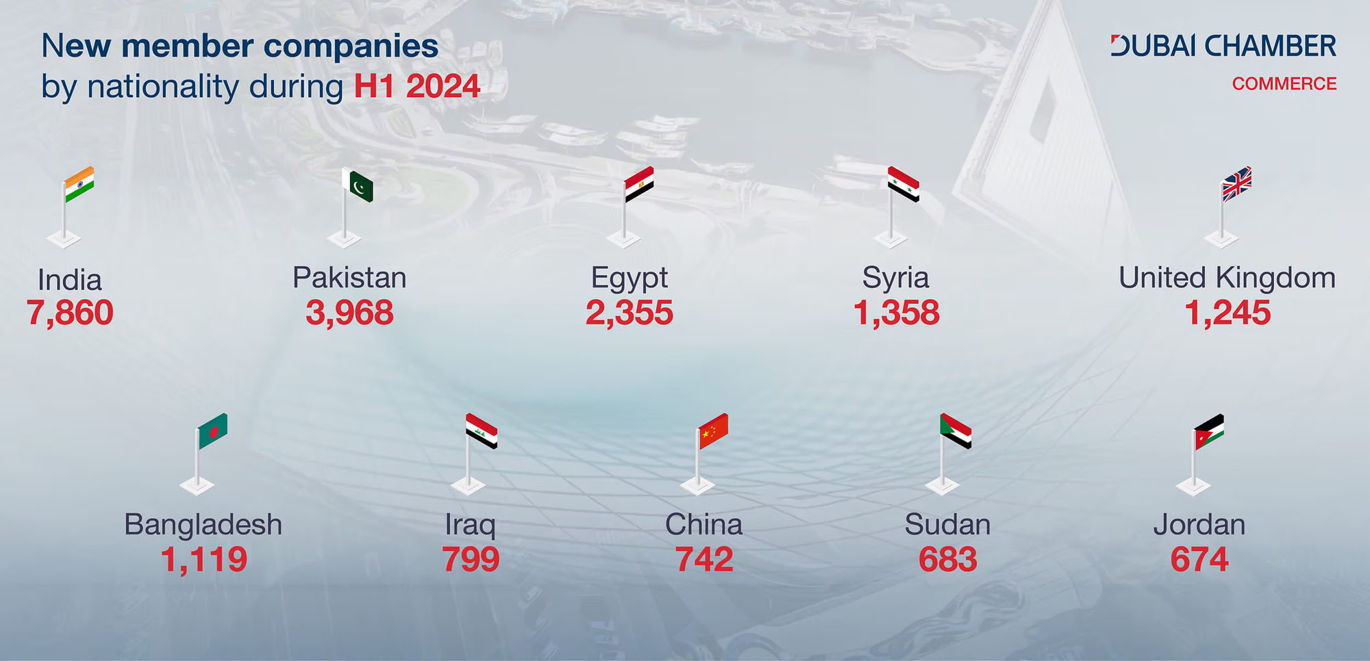 A recent analysis by the Dubai Chamber of Commerce has revealed that Indian investors topped the list of new non-Emirati companies joining the chamber in the first half of 2024, with 7,860 new companies.